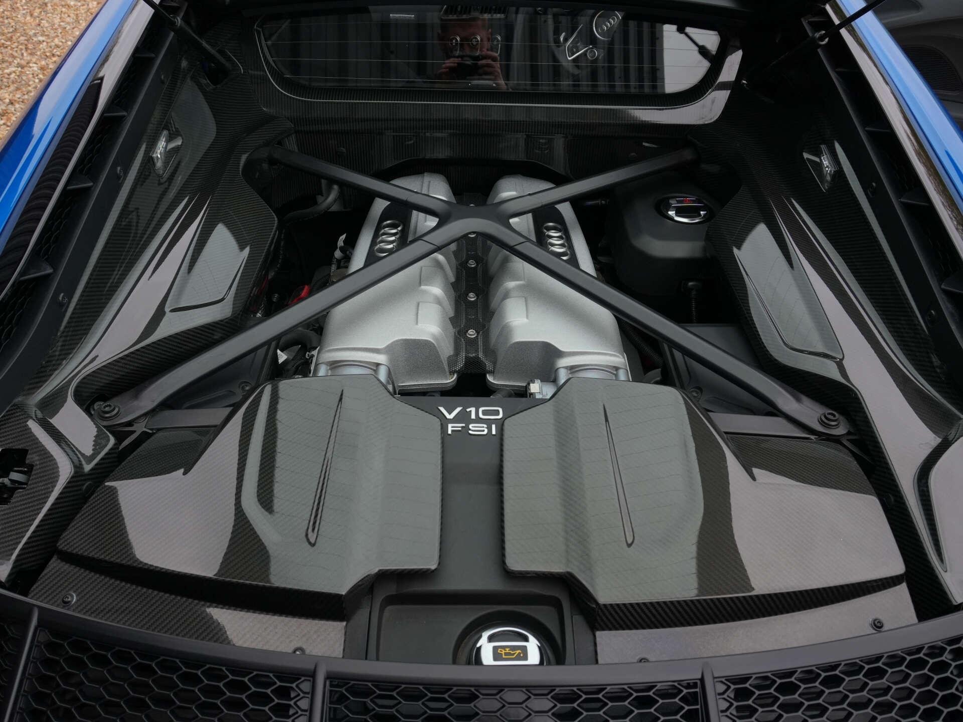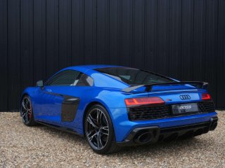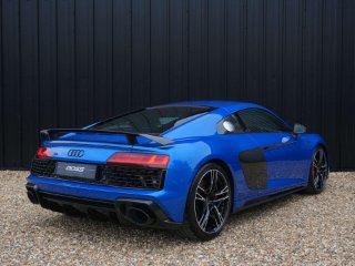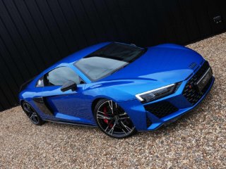 2021 (71) Audi R8 V10 Performance Carbon Black 3,800 miles – 2 owners from new – Full Audi main dealer service history Finished in Ara Blue Crystal with Black extended Nappa leather interior, this low-mileage R8 Carbon Black combines Audi’s naturally aspirated V10 engine with a distinctive carbon fibre exterior styling package. Key details: - 2021 / 71 plate - 3,800 miles - V10 Performance Carbon Black Coupe (620 PS) - 5.2-litre naturally aspirated V10 petrol engine - 7-speed S tronic dual-clutch transmission - Quattro all-wheel drive Specification highlights: - Ara Blue Crystal exterior paint - Black extended Nappa leather interior - Full carbon fibre exterior trims - Carbon fibre engine bay finish - Bang & Olufsen premium sound system - Electrically adjustable sports seats - Heated front seats - Reversing camera with Parking System Plus - Wireless phone charging pad - Apple CarPlay & Android Auto connectivity - Interior ambient lighting package - LED headlights with High Beam Assist - 20" alloy wheels in gloss black History & ownership: - 2 owners from new - Full Audi main dealer service history Disclaimer: Whilst every effort has been taken to ensure accuracy of all our vehicles information, some inaccuracies may occur. It is important that you do not rely on this information but check with Boss motor company limited about any items which may affect your decision to buy this vehicle. Fuel consumption and power usage figures are for guidance only. Factors such as driving style, weather, loading, traffic conditions, all affect the rate at which fuel or power is consumed. It is likely that some journeys will result in greater fuel consumption for the same distance than other journeys. You would be wise to ensure the power range remains above 20% at all times. -