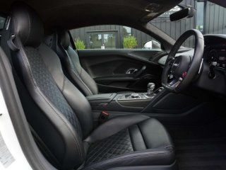 2017 Audi R8 V10 Plus Coupe 33,500 miles – Full Audi main dealer service history Finished in Ibis White with Black extended leather interior, this R8 V10 Plus combines Audi’s naturally aspirated 5.2-litre V10 with a well-specified interior and carbon fibre detailing. Key details: - 2017 / 17 plate - 33,500 miles - V10 Plus Coupe (610 PS) - 5.2-litre V10 petrol engine - 7-speed S tronic transmission - Quattro all-wheel drive Specification highlights: - Ibis White exterior - Black extended leather interior - Sports seats with diamond quilting - Carbon fibre exterior trims - Carbon fibre interior inlays - Bang & Olufsen premium sound system - Rear-view camera - Wireless phone charging - Alcantara headlining - Audi Laser Lights with High Beam Assist - Driver Assistance Pack: - Adaptive cruise control - Lane departure warning - Side assist - Sport Plus Pack: - Dynamic steering - Magnetic ride adaptive suspension - Sports exhaust system - Sound & Comfort Pack: - Advanced key with hands-free boot opening - Extended interior lighting package - Bang & Olufsen sound system - Storage package - 20" 10-spoke Y-design forged alloy wheels in Black History: - Full Audi main dealer service history Disclaimer: Whilst every effort has been taken to ensure accuracy of all our vehicles information, some inaccuracies may occur. It is important that you do not rely on this information but check with Boss motor company limited about any items which may affect your decision to buy this vehicle. Fuel consumption and power usage figures are for guidance only. Factors such as driving style, weather, loading, traffic conditions, all affect the rate at which fuel or power is consumed. It is likely that some journeys will result in greater fuel consumption for the same distance than other journeys. You would be wise to ensure the power range remains above 20% at all times. -