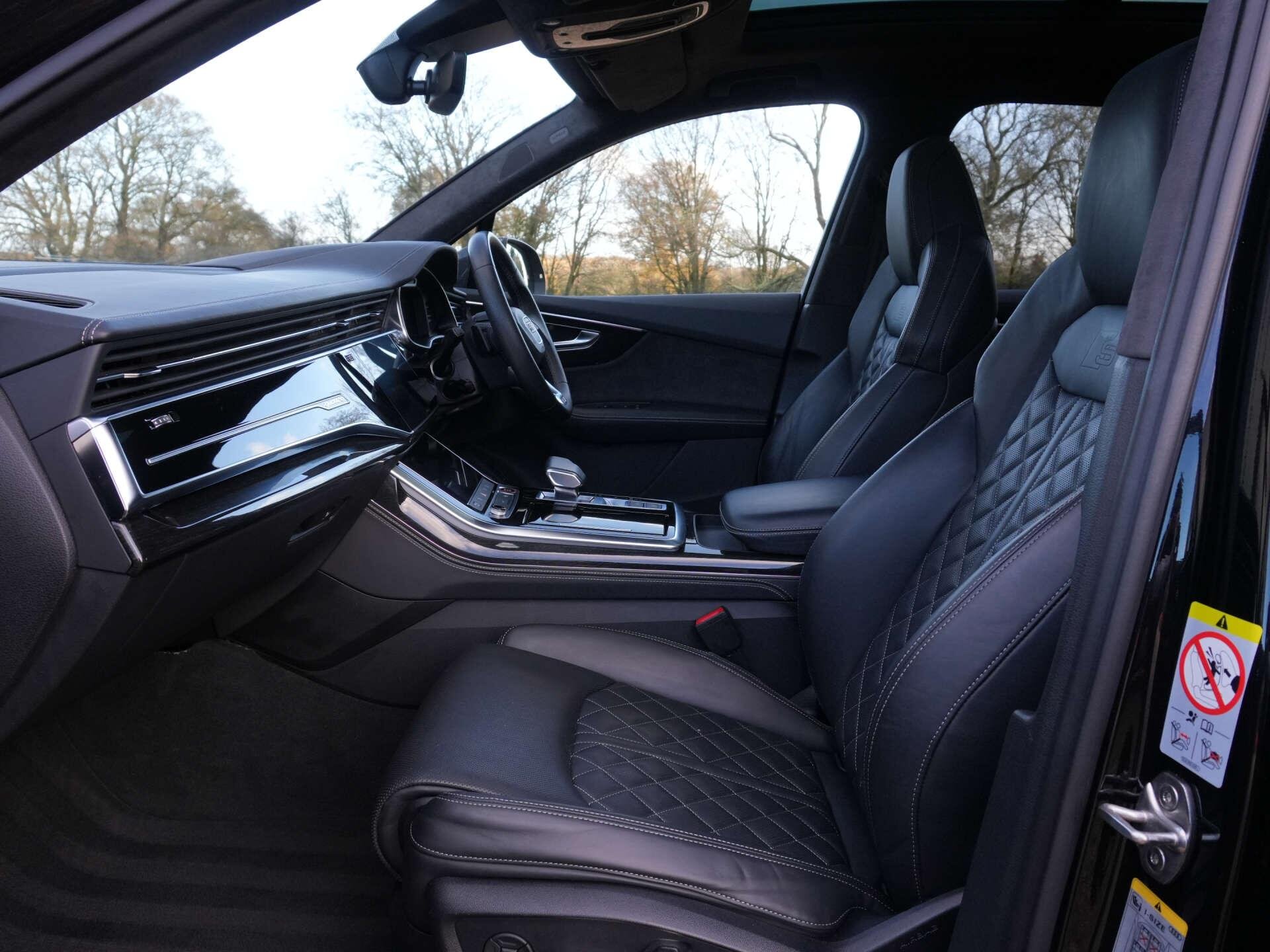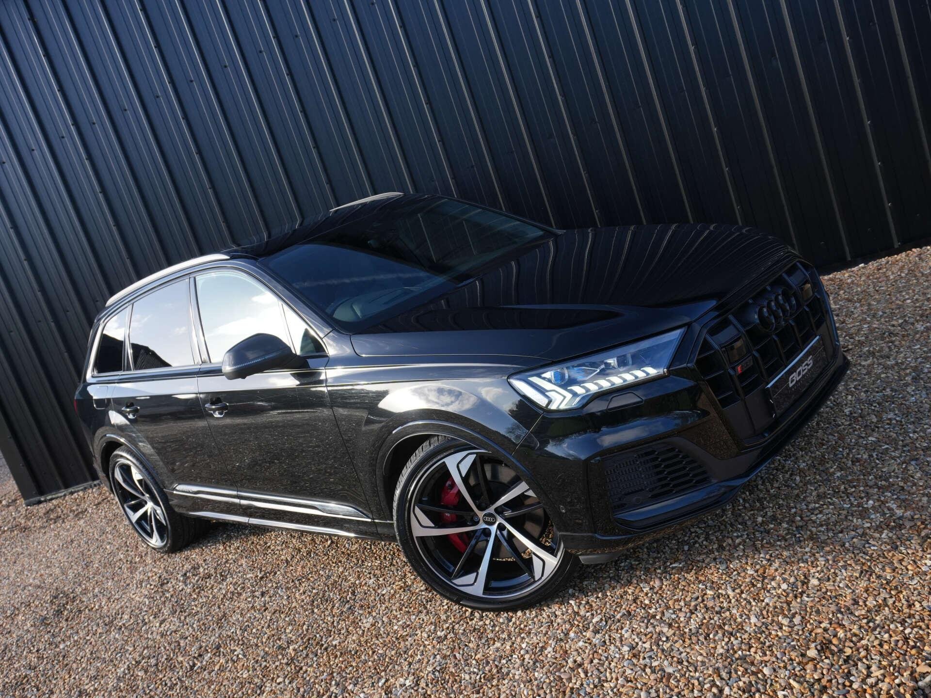 2022 Audi SQ7 Vorsprung TFSI Quattro Auto 22,500 miles – 1 owner from new – Full Audi main dealer service history Finished in Mythos Black Metallic with Black leather interior, this one-owner SQ7 Vorsprung sits at the top of the model range, offering a huge equipment list, exceptional refinement and powerful V8 performance. Key details: - 2022 / 22 plate - 22,500 miles - Vorsprung edition - 4.0-litre twin-turbocharged V8 petrol engine (507 PS) - 8-speed Tiptronic automatic transmission - Quattro all-wheel drive Specification highlights: - Mythos Black Metallic exterior - Black leather interior - Carbon fibre door mirror covers - Smooth leather dashboard - Opening glass panoramic roof - Soft close doors - Heated and ventilated front seats - Massage function for front seats - Heated rear seats - Heated steering wheel - Power tailgate - Ambient interior lighting - Privacy glass - 3D Surround Camera system - Audi Drive Select - Matrix LED headlamps - Power-folding heated door mirrors - Bang & Olufsen 3D Premium Sound System - Adaptive air suspension - All-wheel steering - Head-up display - Adaptive cruise control with lane assist & side assist - Traffic sign recognition - Extended leather package - 22" alloy wheels (Vorsprung design) - Black styling pack with gloss black exterior details - Park Assist with 360° cameras - Keyless entry and start - High-beam assist History & ownership: - 1 owner from new - Full Audi main dealer service history Disclaimer: Whilst every effort has been taken to ensure accuracy of all our vehicles information, some inaccuracies may occur. It is important that you do not rely on this information but check with Boss motor company limited about any items which may affect your decision to buy this vehicle. Fuel consumption and power usage figures are for guidance only. Factors such as driving style, weather, loading, traffic conditions, all affect the rate at which fuel or power is consumed. It is likely that some journeys will result in greater fuel consumption for the same distance than other journeys. You would be wise to ensure the power range remains above 20% at all times. -