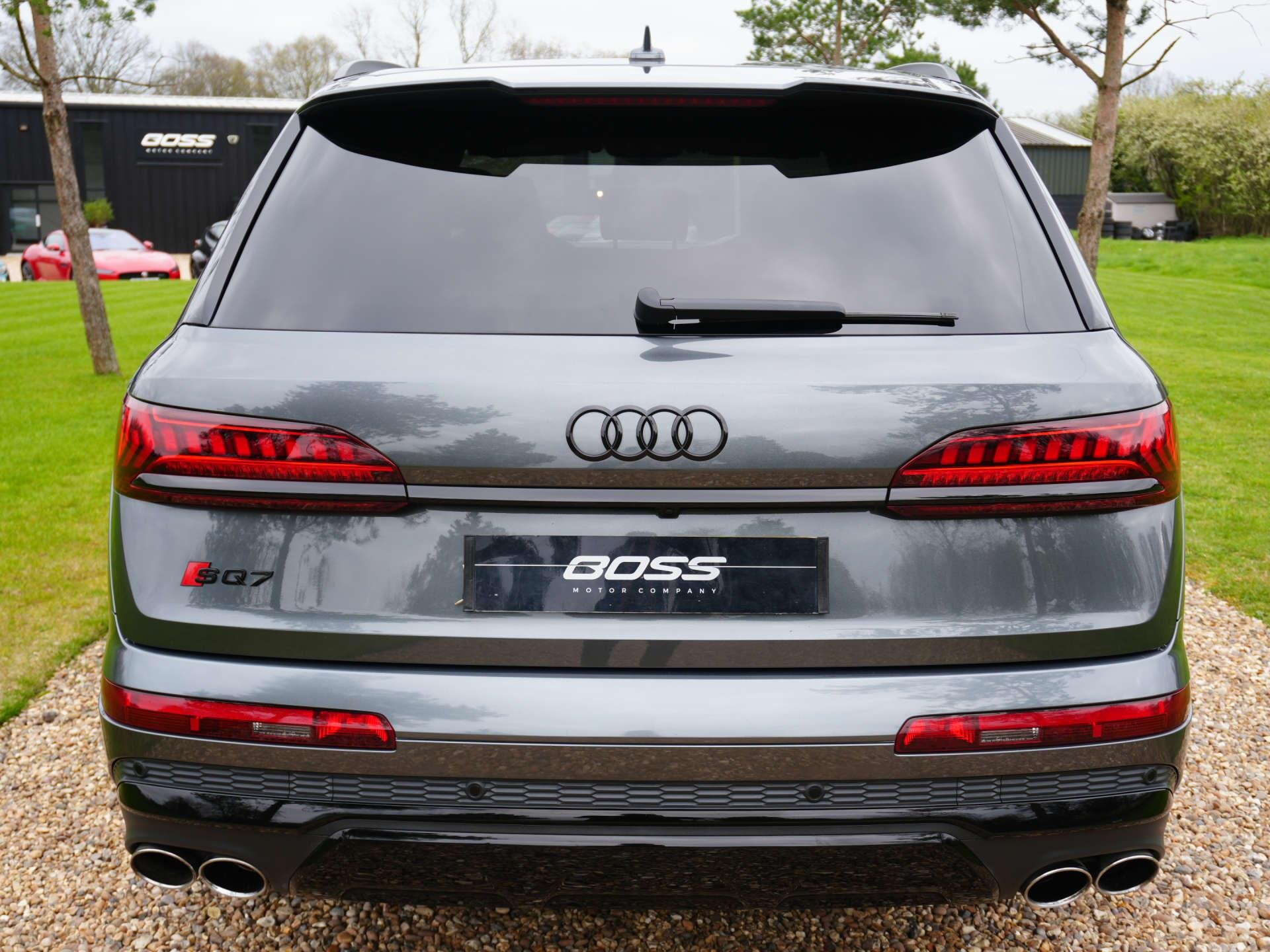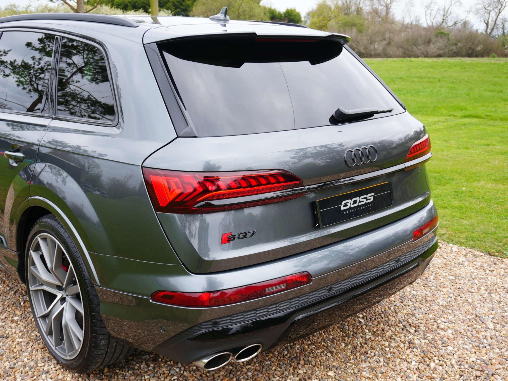 2022 (71) Audi SQ7 Vorsprung TFSI Quattro Auto 34,200 miles – 2 owners from new – Full Audi main dealer service history Finished in Daytona Grey with Black leather interior, this SQ7 Vorsprung offers V8 performance alongside a high level of comfort and technology, with a comprehensive factory specification. Key details: 2022 / 71 plate 34,200 miles Vorsprung edition 4.0-litre twin-turbocharged V8 petrol engine (507 PS) 8-speed Tiptronic automatic transmission Quattro all-wheel drive Specification highlights: - Daytona Grey exterior - Black leather interior - Opening glass panoramic roof - Electrically adjustable front seats with memory - Heated front and rear seats - Ventilated front seats - Massage function front seats - Black roof rails - Black exterior mirrors - Power-folding, heated exterior mirrors - Power tailgate - Keyless entry and start - Soft close doors - Head-up display - Bang & Olufsen sound system - Adaptive cruise control - Blind spot assist - Park Assist system - 360° Surround Camera system - Matrix LED headlights - Privacy glass - Ambient interior lighting - Adaptive air suspension - All-wheel steering - Extended leather package - 22" alloy wheels History & ownership: - 2 owners from new - Full Audi main dealer service history Disclaimer: Whilst every effort has been taken to ensure accuracy of all our vehicles information, some inaccuracies may occur. It is important that you do not rely on this information but check with Boss motor company limited about any items which may affect your decision to buy this vehicle. Fuel consumption and power usage figures are for guidance only. Factors such as driving style, weather, loading, traffic conditions, all affect the rate at which fuel or power is consumed. It is likely that some journeys will result in greater fuel consumption for the same distance than other journeys. You would be wise to ensure the power range remains above 20% at all times. -