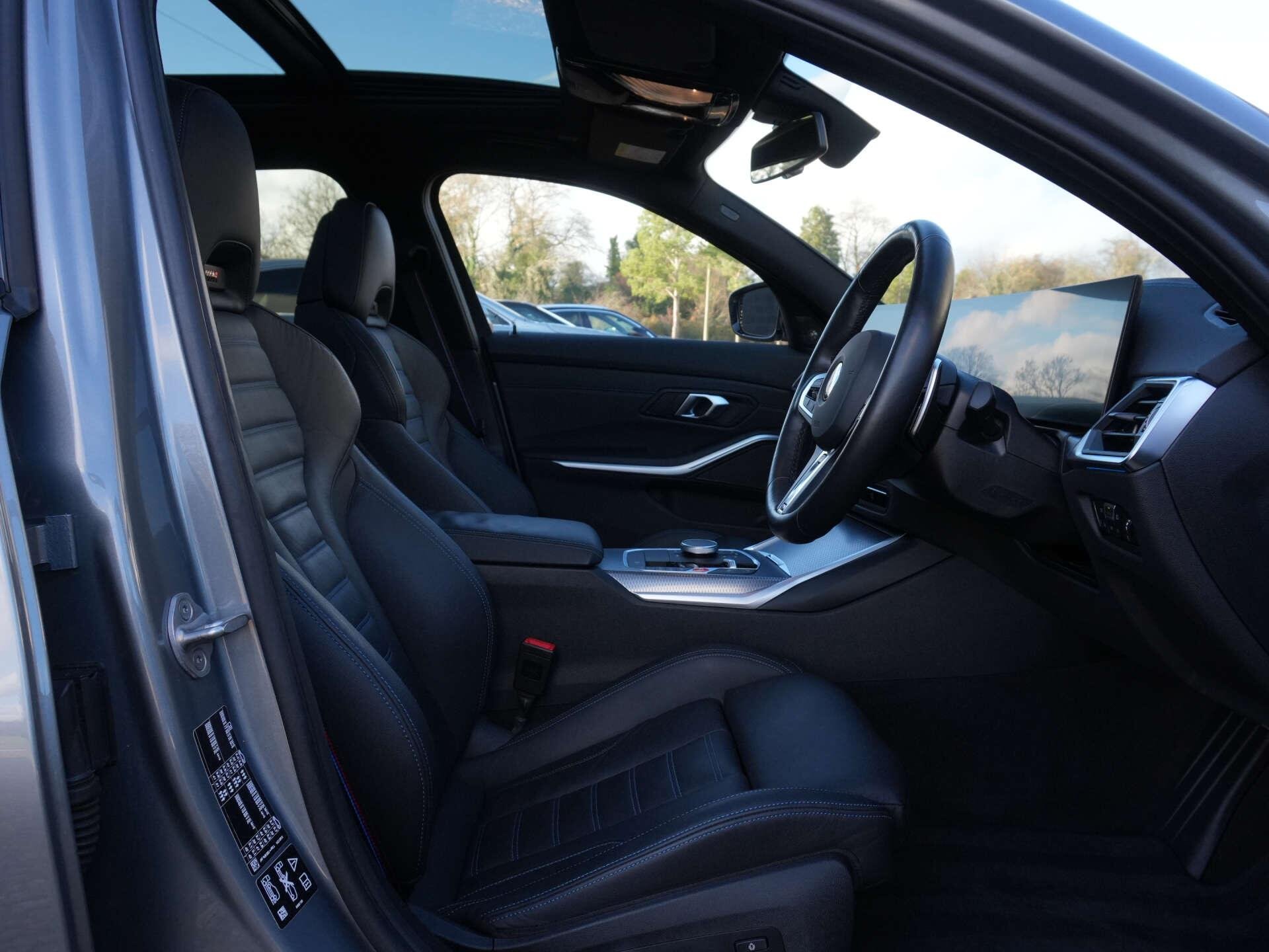 2023 BMW M340i xDrive Touring Auto 19,800 miles – 1 owner from new – Full BMW service history Finished in Skyscraper Grey Metallic with Black leather featuring Blue contrast stitching, this one-owner M340i Touring is well specified from factory and enhanced with tasteful Motech and Eibach upgrades. Key details: - 2023 / 23 plate - 19,800 miles - M340i xDrive Touring - 3.0-litre turbocharged straight-six engine (374 bhp) - 8-speed automatic transmission - xDrive all-wheel drive Specification highlights: - Skyscraper Grey Metallic exterior - Black leather interior with Blue contrast stitching - Harman Kardon surround sound system - Panoramic glass sunroof - Heated steering wheel - Front lumbar support - Ambient interior lighting - LED headlights - Motech MW-3 alloy wheels - Eibach lowering springs (fitted by Motech) - Comfort Plus Pack: - Comfort Access (keyless entry) - Electric bootlid operation - Heated front seats - Extended storage package - Wireless charging History & ownership: - 1 owner from new - Full BMW service history Disclaimer: Whilst every effort has been taken to ensure accuracy of all our vehicles information, some inaccuracies may occur. It is important that you do not rely on this information but check with Boss motor company limited about any items which may affect your decision to buy this vehicle. Fuel consumption and power usage figures are for guidance only. Factors such as driving style, weather, loading, traffic conditions, all affect the rate at which fuel or power is consumed. It is likely that some journeys will result in greater fuel consumption for the same distance than other journeys. You would be wise to ensure the power range remains above 20% at all times. -