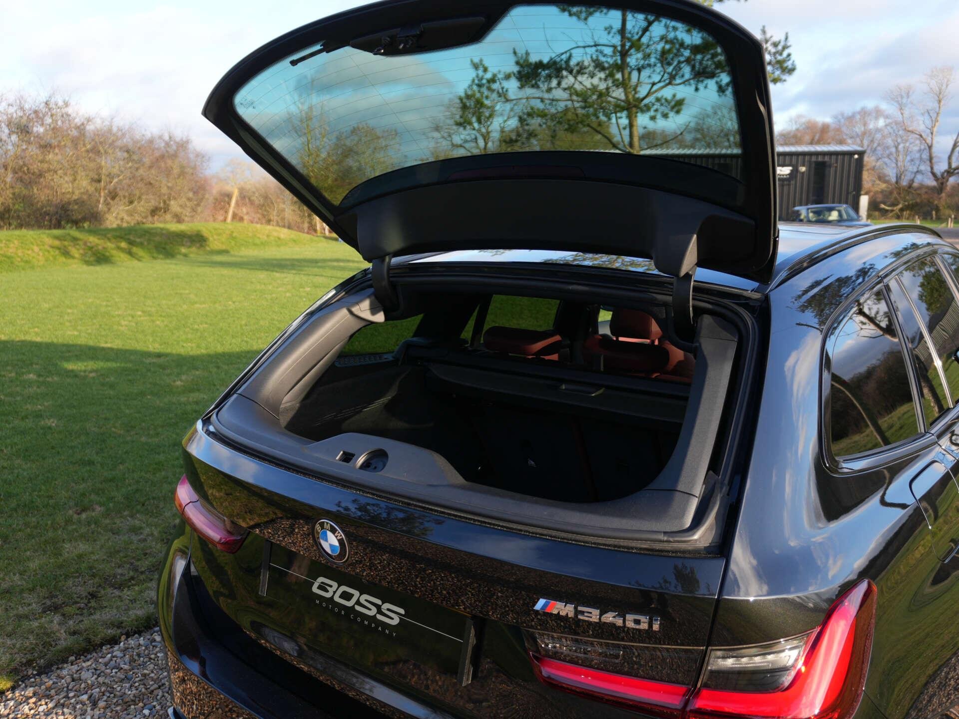 2023 (72) BMW M340i Touring Auto 17,250 miles – 1 owner from new Finished in Black Sapphire Metallic with Tacora Red Vernasca leather interior, this one-owner M340i Touring offers a strong blend of performance, comfort and practicality, complemented by a desirable factory specification. Key details: - 2023 / 72 plate - 17,250 miles - M340i Touring - 3.0-litre turbocharged straight-six petrol engine (374 bhp) - 8-speed automatic transmission Specification highlights: - Black Sapphire Metallic exterior - Tacora Red Vernasca leather interior - Panoramic glass sunroof - Sun protection glazing - Heated front seats - Ambient interior lighting - Adaptive LED headlights - High Beam Assist - Park Assist system - Cruise control - BMW Live Cockpit Professional - Apple CarPlay & Android Auto - Power tailgate - Front & rear parking sensors - 19" BMW 792M alloy wheels History & ownership: - 1 owner from new Disclaimer: Whilst every effort has been taken to ensure accuracy of all our vehicles information, some inaccuracies may occur. It is important that you do not rely on this information but check with Boss motor company limited about any items which may affect your decision to buy this vehicle. Fuel consumption and power usage figures are for guidance only. Factors such as driving style, weather, loading, traffic conditions, all affect the rate at which fuel or power is consumed. It is likely that some journeys will result in greater fuel consumption for the same distance than other journeys. You would be wise to ensure the power range remains above 20% at all times. -