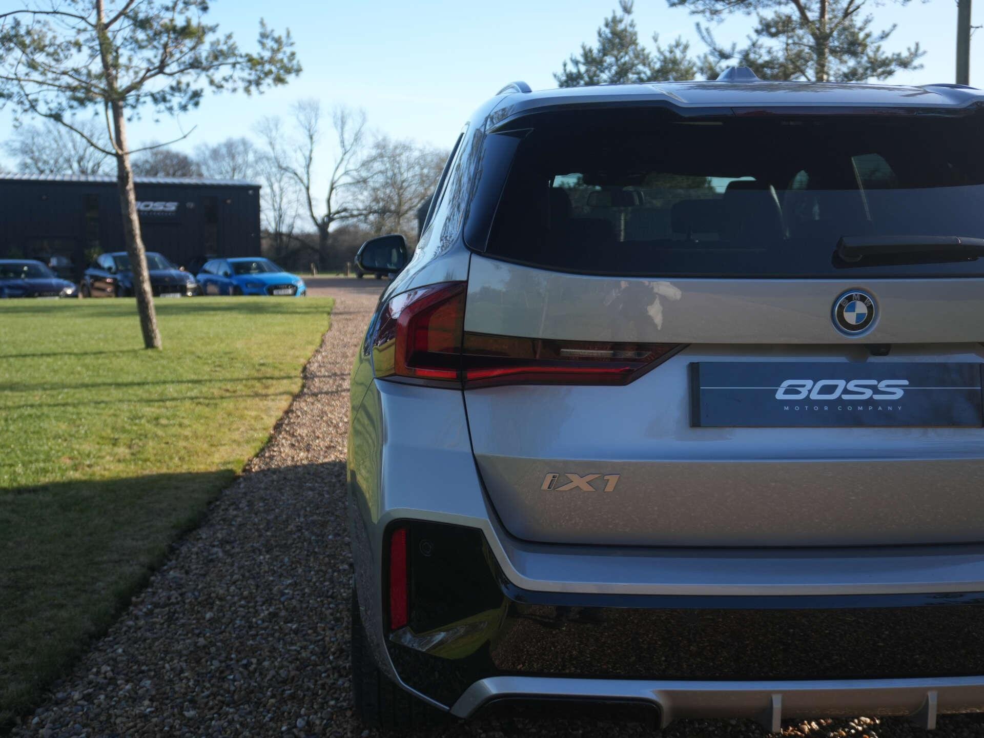 2023 (73) BMW iX1 M Sport xDrive30 3,800 miles – 2 owners from new Finished in Space Silver Metallic with Black leather and Alcantara interior, this low-mileage BMW iX1 M Sport offers all-electric performance with everyday usability and a strong factory specification. Key details: - 2023 / 73 plate - 3,800 miles - M Sport specification - Dual-motor electric drivetrain (313 bhp / 494 Nm) - xDrive all-wheel drive - Single-speed automatic transmission - 64.7 kWh battery - Up to approx. 272 miles WLTP range Specification highlights: - Space Silver Metallic exterior - Black leather and Alcantara M Sport interior - M Sport exterior and interior styling - Sun protection glazing - Electrically adjustable front seats with driver memory - Heated front seats - Cruise control - Park Assist system - Reversing camera - Front & rear parking sensors - Apple CarPlay & Android Auto - BMW Live Cockpit Professional - Ambient interior lighting - Keyless start - Power tailgate - 19" BMW 838M M Sport alloy wheels History & ownership: - 2 owners from new Disclaimer: Whilst every effort has been taken to ensure accuracy of all our vehicles information, some inaccuracies may occur. It is important that you do not rely on this information but check with Boss motor company limited about any items which may affect your decision to buy this vehicle. Fuel consumption and power usage figures are for guidance only. Factors such as driving style, weather, loading, traffic conditions, all affect the rate at which fuel or power is consumed. It is likely that some journeys will result in greater fuel consumption for the same distance than other journeys. You would be wise to ensure the power range remains above 20% at all times. -