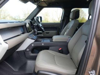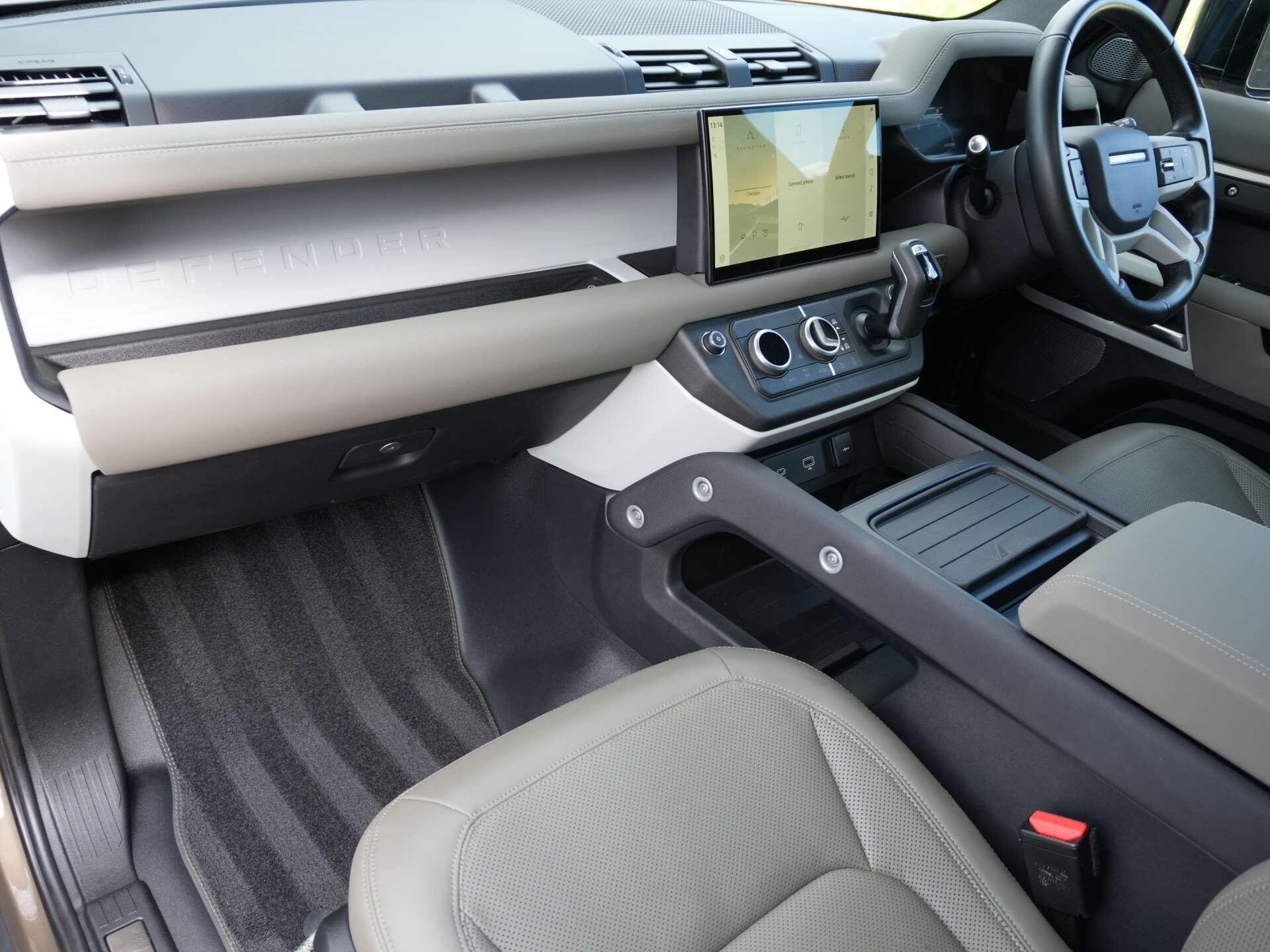 2022 Land Rover Defender 110 D250 X-Dynamic HSE Auto 7 SEATS 26,700 miles – 2 owners from new – Full Land Rover main dealer service history Finished in Gondwana Stone Gloss with Khaki and Ebony interior, this Defender 110 X-Dynamic HSE is a well-specified example enhanced with exterior styling upgrades and a strong factory equipment list. Key details: - 2022 / 22 plate - 26,700 miles - X-Dynamic HSE specification - D250 3.0-litre six-cylinder diesel engine (249 PS, Mild Hybrid) - 8-speed automatic transmission - All-wheel drive - 7 Seater Specification highlights: - Gondwana Stone Gloss exterior - Khaki and Ebony interior - Black painted contrast roof - Opening glass panoramic sunroof - 22" ‘Octa’ alloy wheels - Large wheel arch extensions - Rear spoiler - Extended mudflaps - Spare wheel cover - Side steps - LED Premium headlamps with High Beam Assist - Heated windscreen - Heated steering wheel - Heated and cooled front seats - Electrically adjustable front seats with memory settings - Electric steering column adjustment - 11.4" Pivi Pro infotainment touchscreen - Wireless Apple CarPlay & Android Auto - Meridian sound system - Ambient interior lighting - Power-folding heated exterior mirrors - Keyless entry and start - Adaptive cruise control - Blind spot assist - Traffic sign recognition - 3D Surround Camera system - Privacy glass - Electric deployable towbar - Electronic air suspension - Terrain Response system History & ownership: - 2 owners from new - Full Land Rover main dealer service history Disclaimer: Whilst every effort has been taken to ensure accuracy of all our vehicles information, some inaccuracies may occur. It is important that you do not rely on this information but check with Boss motor company limited about any items which may affect your decision to buy this vehicle. Fuel consumption and power usage figures are for guidance only. Factors such as driving style, weather, loading, traffic conditions, all affect the rate at which fuel or power is consumed. It is likely that some journeys will result in greater fuel consumption for the same distance than other journeys. You would be wise to ensure the power range remains above 20% at all times. -