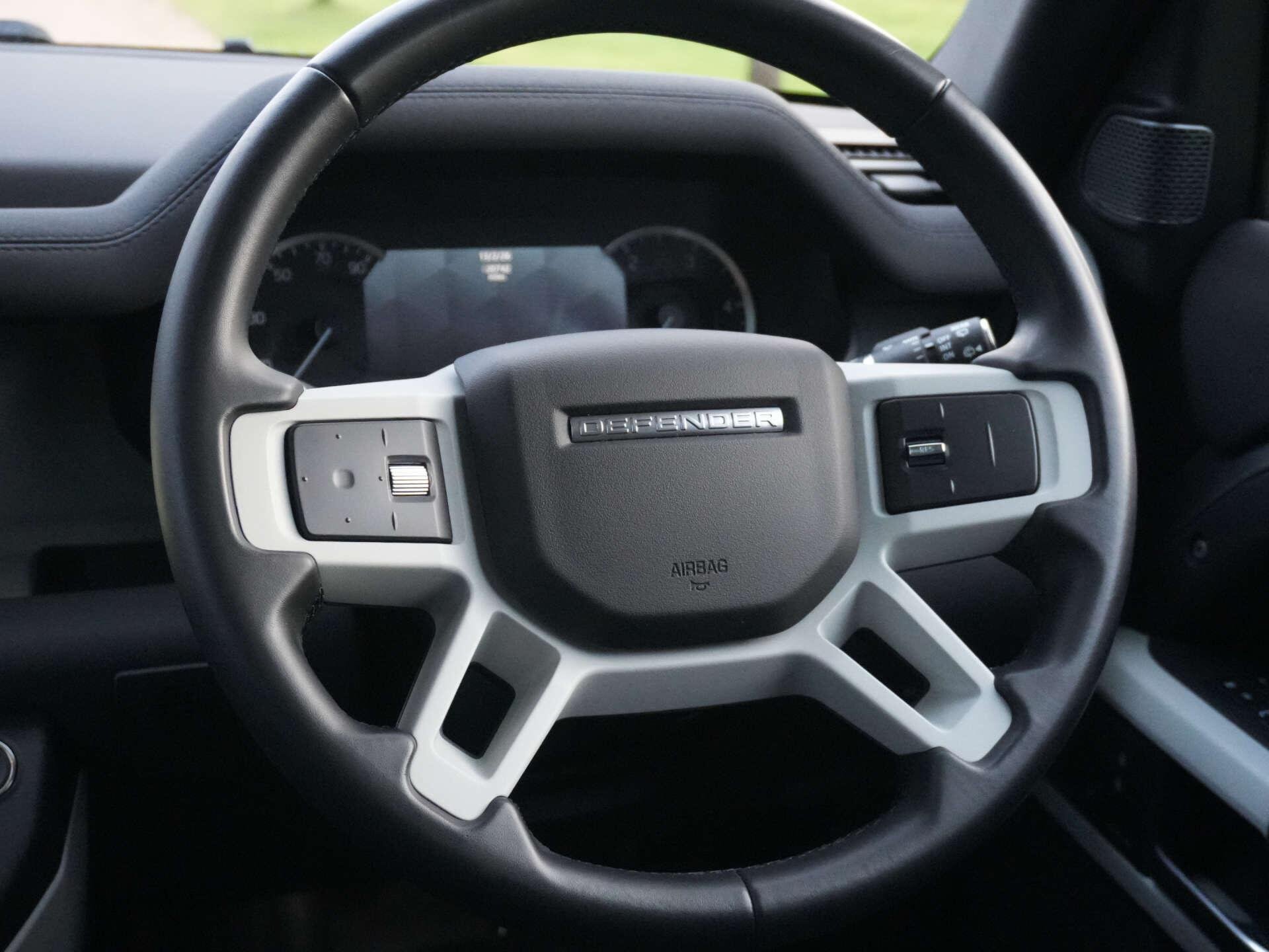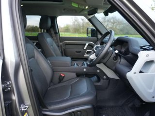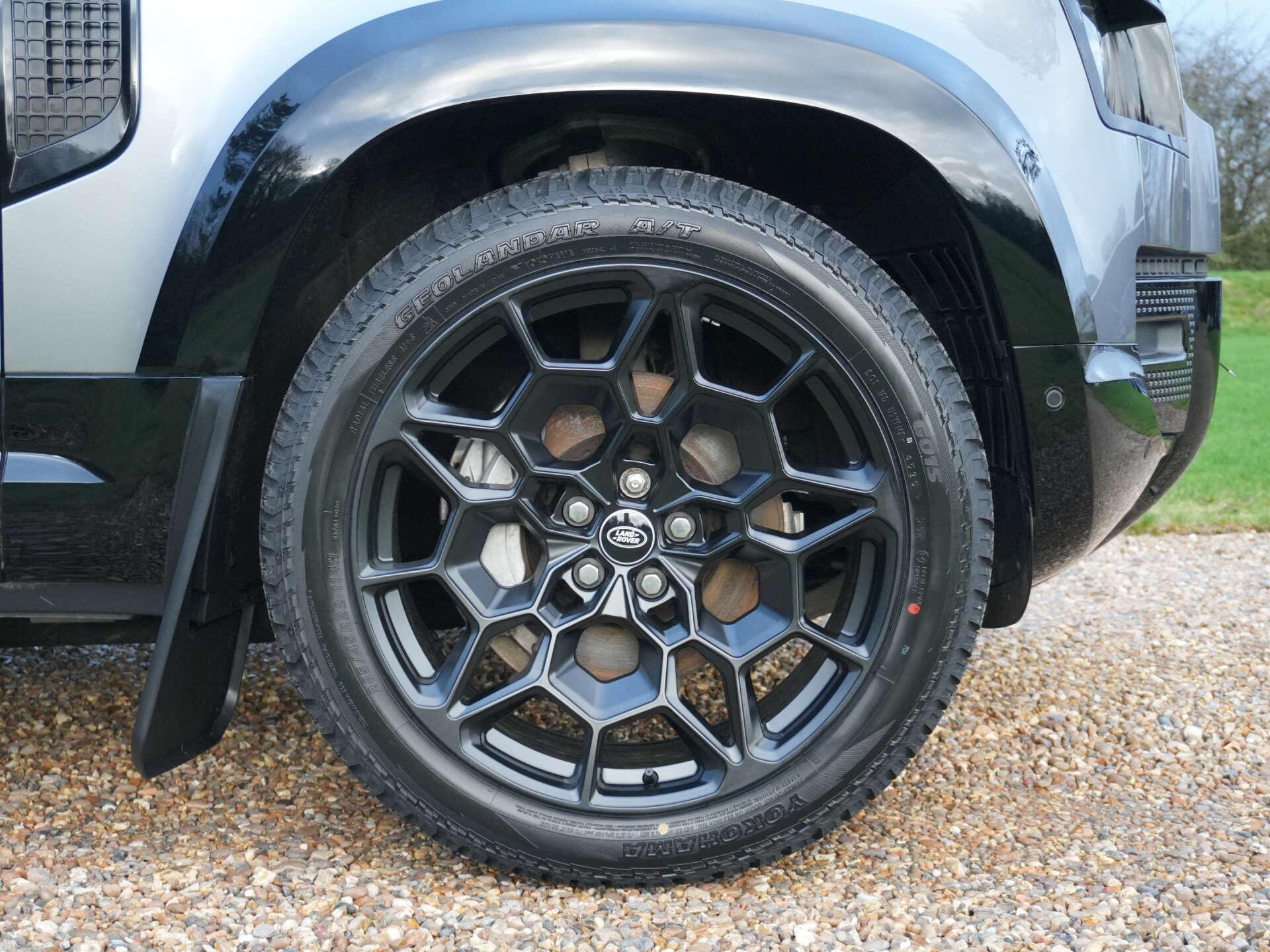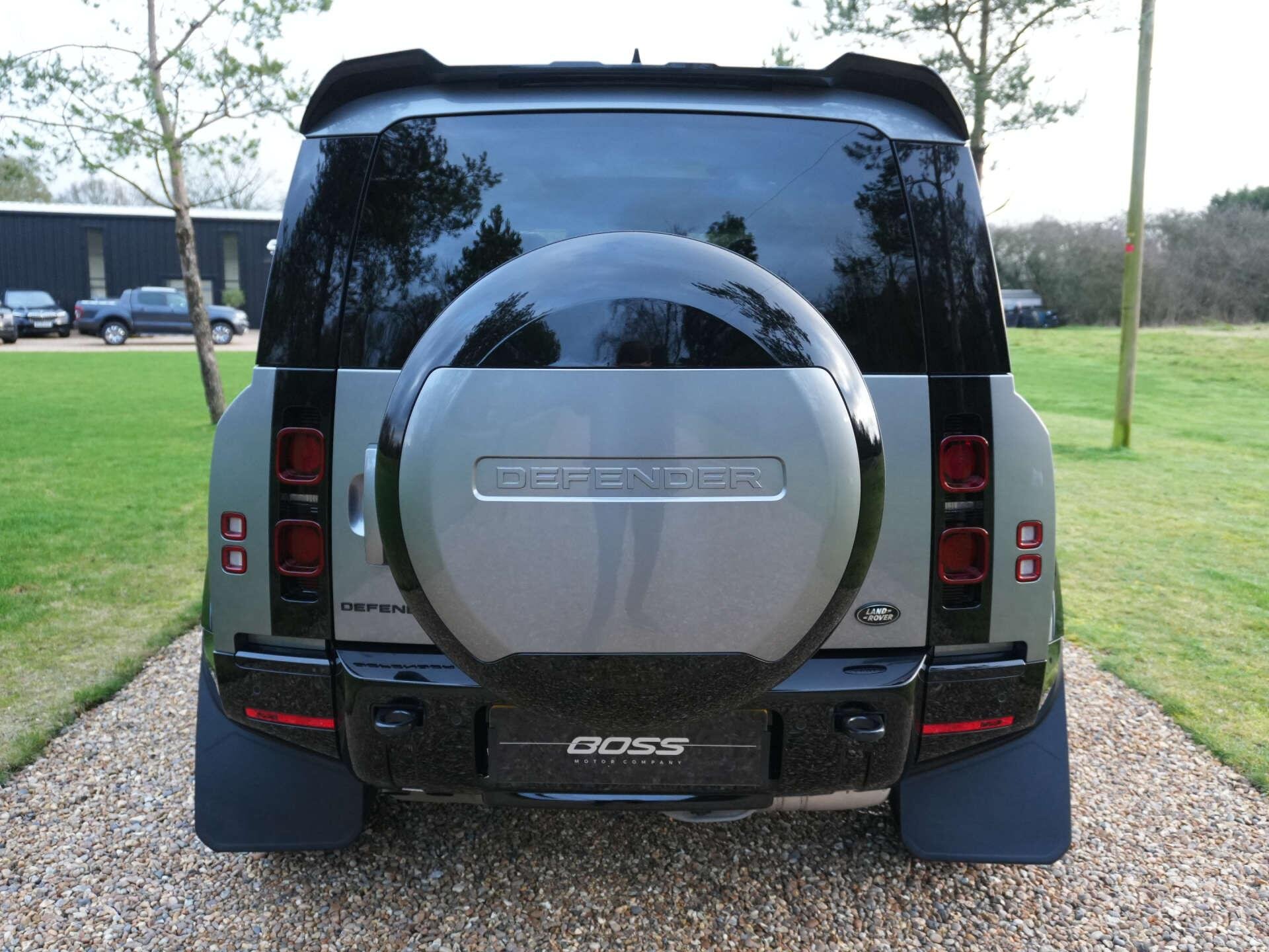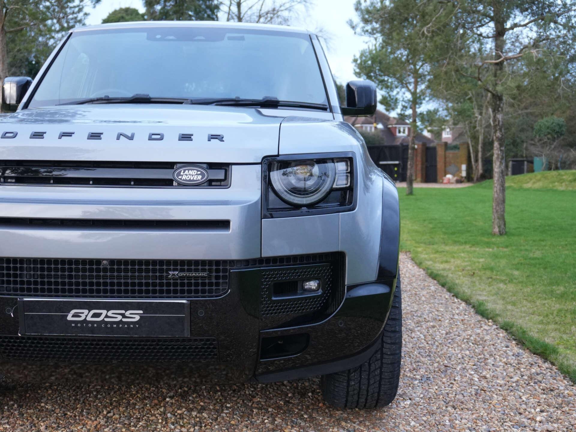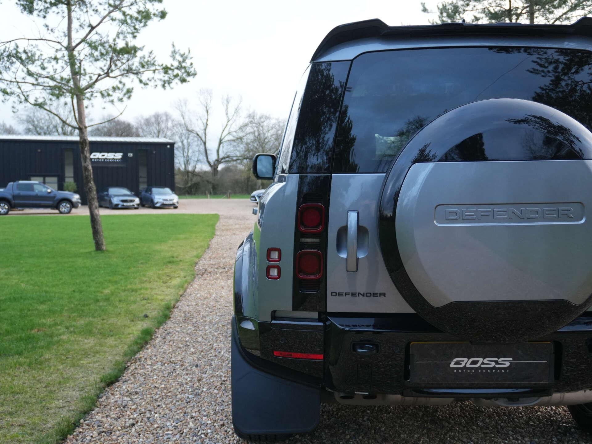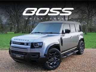 2023 Land Rover Defender 110 D300 X-Dynamic SE Auto 20,500 miles – 2 owners from new – Full Land Rover main dealer service history Finished in Eiger Grey with Black leather interior, this Defender 110 X-Dynamic SE is a well-presented example enhanced with extensive exterior upgrades and a strong factory specification, combining luxury, practicality and off-road capability. Key details: - 2023 / 23 plate - 20,500 miles - X-Dynamic SE specification - D300 3.0-litre six-cylinder diesel engine (300 PS, Mild Hybrid) - 8-speed automatic transmission - All-wheel drive Specification highlights: - Eiger Grey exterior - Black leather interior - 22” alloy wheels - Wheel arch extensions - Extended mudflaps - Rear spoiler extension - Spare wheel cover - Side steps - Black exterior styling pack - Power opening panoramic glass roof - Heated steering wheel - Heated windscreen - Heated front seats - Electrically adjustable front seats with memory - Electric deployable towbar - Power-folding, heated exterior mirrors - Privacy glass - Ambient interior lighting - Meridian sound system - Apple CarPlay & Android Auto - Adaptive cruise control - Blind spot assist - Traffic sign recognition - 3D Surround Camera system - LED Matrix headlamps - Keyless entry and start - Terrain Response system - Electronic air suspension - Configurable driving modes - Front & rear parking sensors - Pivi Pro navigation system with touchscreen display - Power tailgate History & ownership: - 2 owners from new - Full Land Rover main dealer service history Disclaimer: Whilst every effort has been taken to ensure accuracy of all our vehicles information, some inaccuracies may occur. It is important that you do not rely on this information but check with Boss motor company limited about any items which may affect your decision to buy this vehicle. Fuel consumption and power usage figures are for guidance only. Factors such as driving style, weather, loading, traffic conditions, all affect the rate at which fuel or power is consumed. It is likely that some journeys will result in greater fuel consumption for the same distance than other journeys. You would be wise to ensure the power range remains above 20% at all times. -