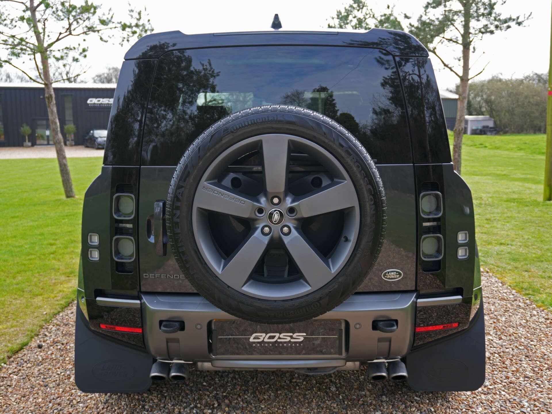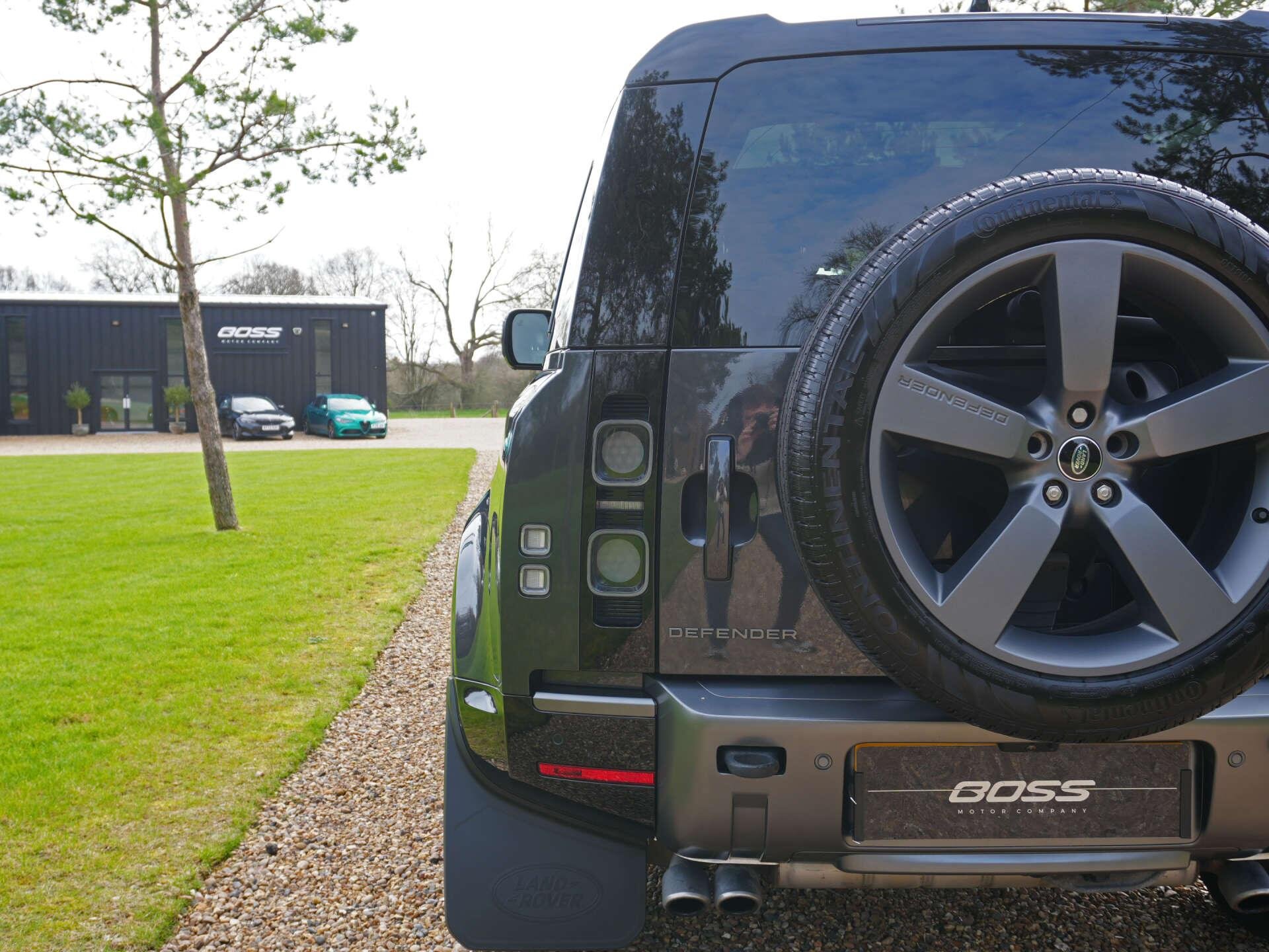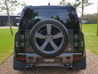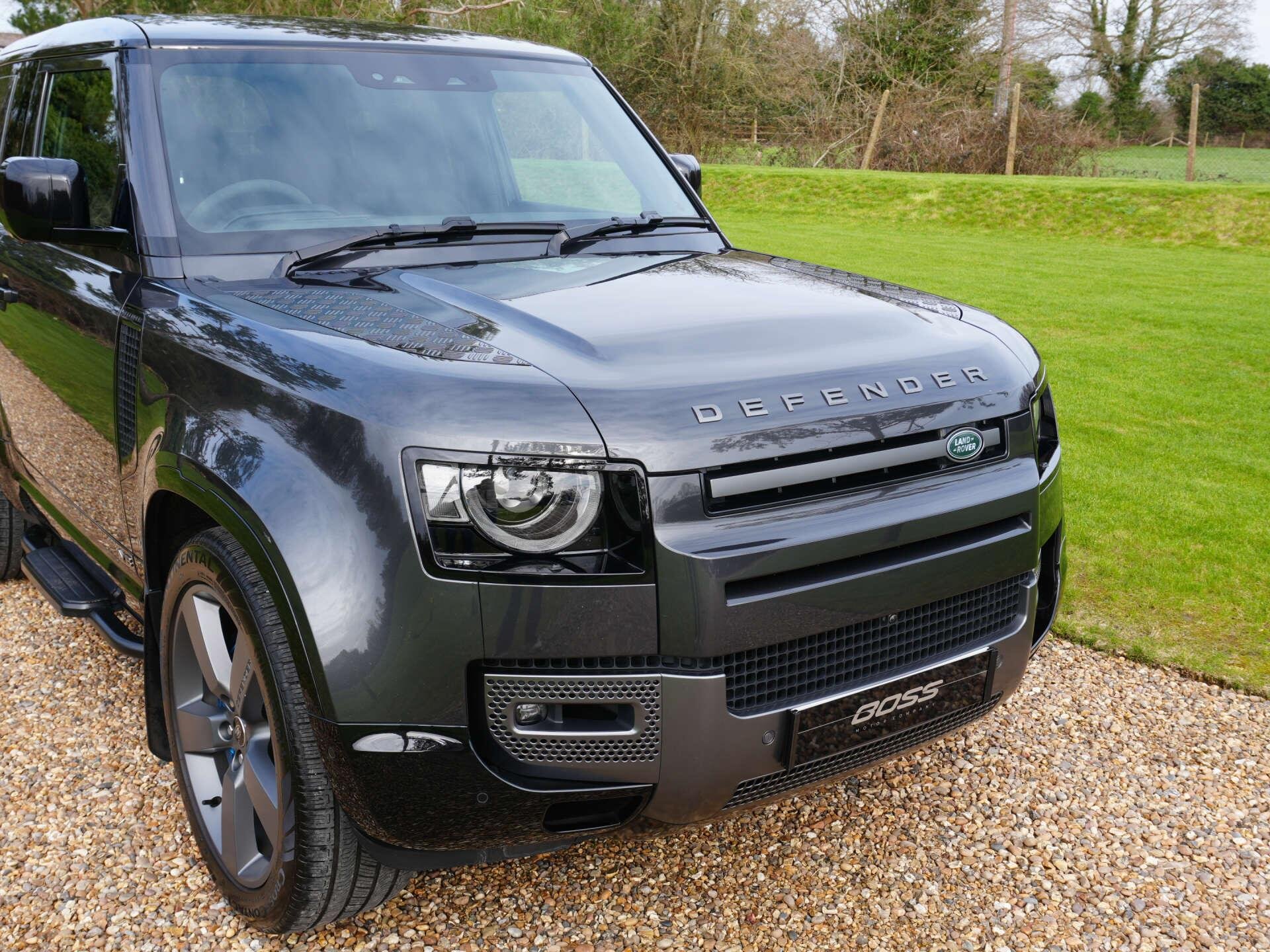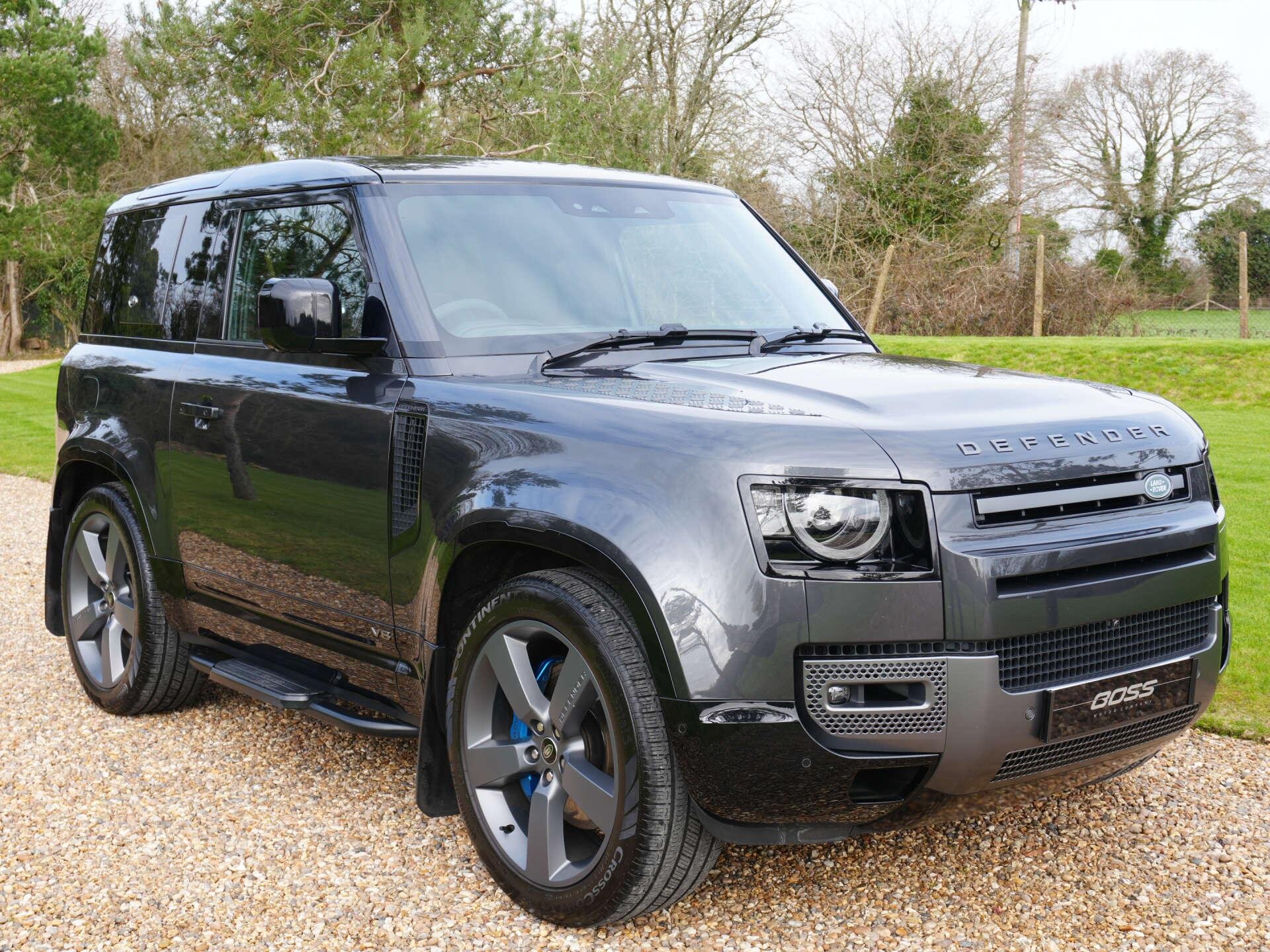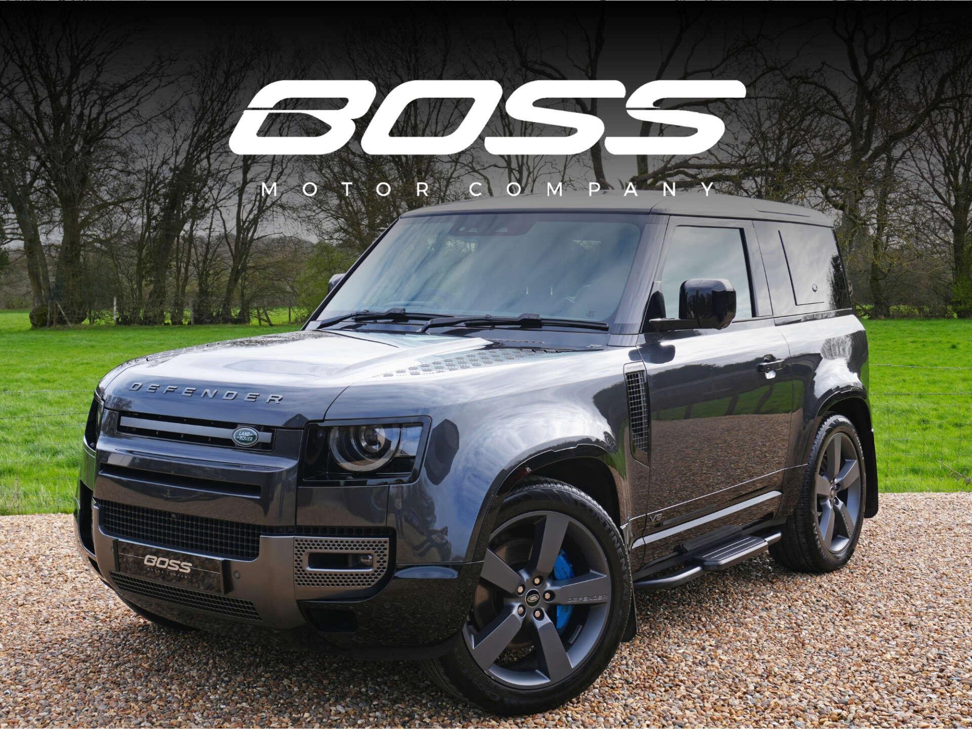2021 Land Rover Defender 90 P525 V8 Auto 22,600 miles – 1 owner from new – Full Land Rover main dealer service history Finished in Carpathian Grey with Black leather interior, this one-owner Defender 90 V8 combines the iconic Defender design with V8 performance and a comprehensive factory specification. Key details: - 2021 / 21 plate - 22,600 miles - Defender 90 P525 V8 - 5.0-litre supercharged V8 petrol engine (525 PS) - 8-speed automatic transmission - All-wheel drive Specification highlights: - Carpathian Grey exterior - Black leather interior - Extended leather upgrade - Black contrast painted roof - Opening glass panoramic sunroof - Side steps - Quad chrome tailpipes - 22" alloy wheels - Power-folding heated exterior mirrors - Head-up display - Smart rear-view mirror - 11.4" touchscreen infotainment system (Pivi Pro) - Wireless Apple CarPlay & Android Auto - Wireless phone charging - Meridian Surround Sound System (1280W) - Centre console refrigerator - Heated steering wheel - Heated windscreen - Heated and cooled front seats - Heated rear seats - Electric front seats with memory - Electric steering column adjustment - Electric deployable towbar - Adaptive cruise control - Blind spot assist - 3D Surround Camera system - LED Matrix headlights - Ambient interior lighting - Privacy glass - Keyless entry and start - Garage door opener History & ownership: - 1 owner from new - Full Land Rover main dealer service history Disclaimer: Whilst every effort has been taken to ensure accuracy of all our vehicles information, some inaccuracies may occur. It is important that you do not rely on this information but check with Boss motor company limited about any items which may affect your decision to buy this vehicle. Fuel consumption and power usage figures are for guidance only. Factors such as driving style, weather, loading, traffic conditions, all affect the rate at which fuel or power is consumed. It is likely that some journeys will result in greater fuel consumption for the same distance than other journeys. You would be wise to ensure the power range remains above 20% at all times. -
