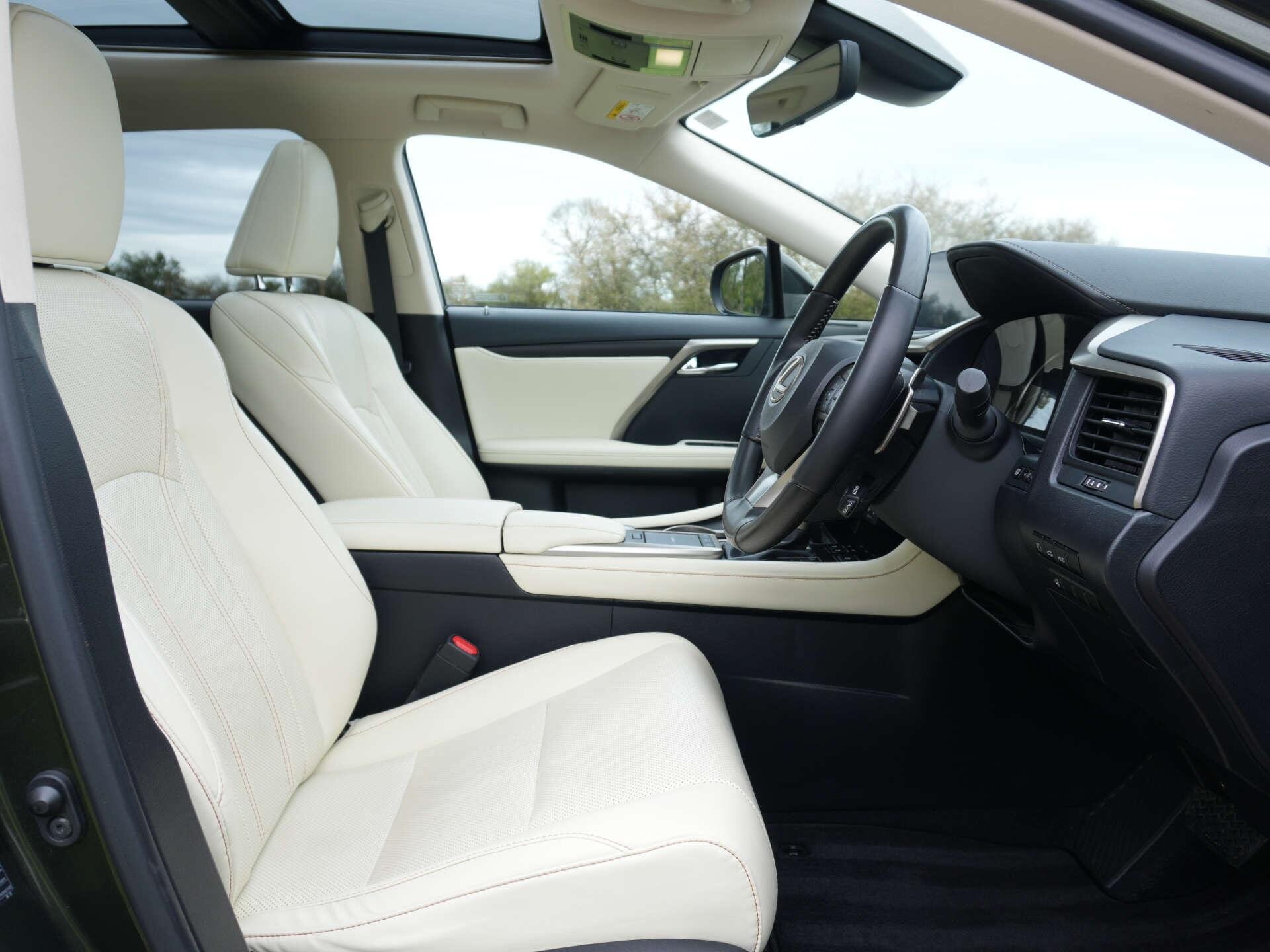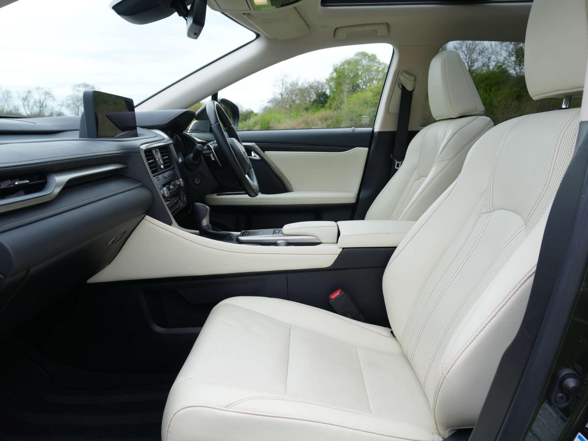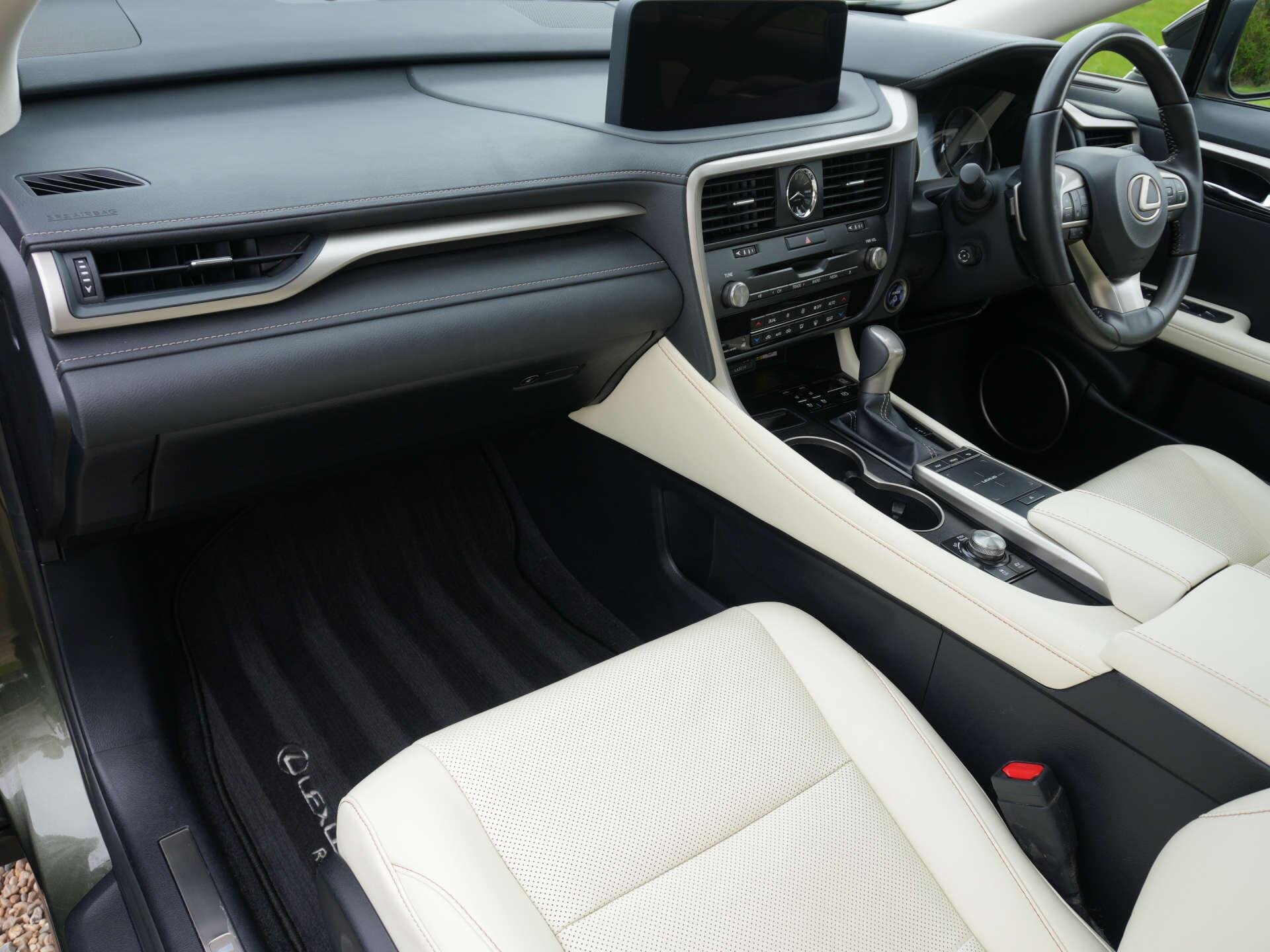 2022 (72) Lexus RX450h Premium Sport Edition Auto 86,500 miles – 1 owner from new – Full Lexus main dealer service history (7 services, 8th to be completed prior to sale) Finished in Terrane Khaki with Rich Cream leather interior, this one-owner RX450h offers hybrid efficiency alongside a strong specification and a full Lexus main dealer service record. Key details: - 2022 / 72 plate - 86,500 miles - Premium Sport Edition - 3.5-litre V6 petrol hybrid (313 PS combined output) - CVT automatic transmission - All-wheel drive Specification highlights: - Terrane Khaki exterior - Rich Cream leather interior - Opening glass panoramic roof - Electrically adjustable front seats with driver memory - Heated and ventilated front seats - Heated rear seats - Heated steering wheel - Electric steering column adjustment - Head-up display - LED headlights with High Beam Assist - Adaptive cruise control - Wireless phone charging - Power-folding exterior mirrors - Power tailgate - Keyless entry and start - Dual-zone climate control - Ambient interior lighting - 20" alloy wheels History & ownership: - 1 owner from new - Full Lexus main dealer service history (7 recorded services) - Will be supplied with an additional Lexus service completed prior to sale Disclaimer: Whilst every effort has been taken to ensure accuracy of all our vehicles information, some inaccuracies may occur. It is important that you do not rely on this information but check with Boss motor company limited about any items which may affect your decision to buy this vehicle. Fuel consumption and power usage figures are for guidance only. Factors such as driving style, weather, loading, traffic conditions, all affect the rate at which fuel or power is consumed. It is likely that some journeys will result in greater fuel consumption for the same distance than other journeys. You would be wise to ensure the power range remains above 20% at all times. -