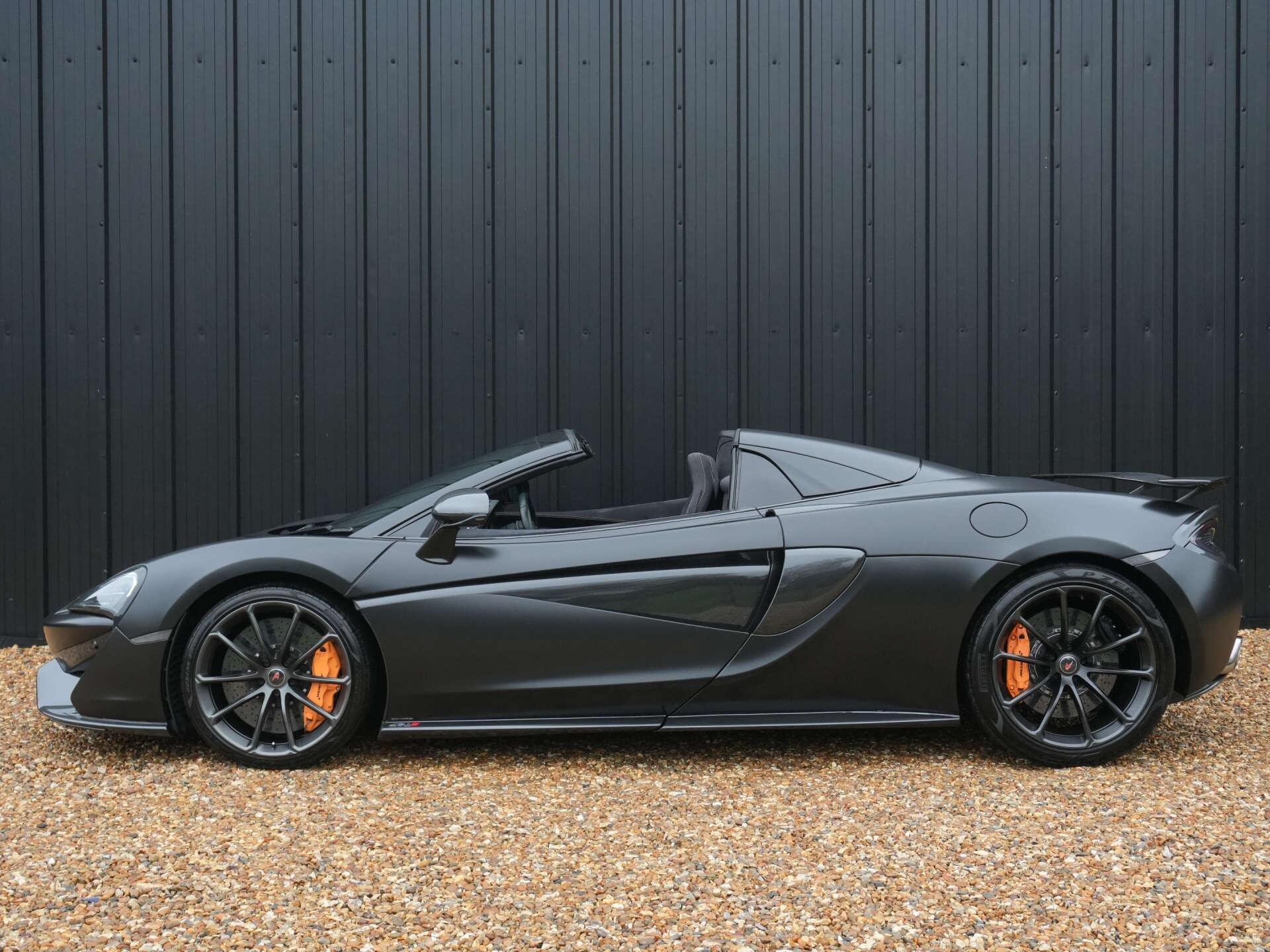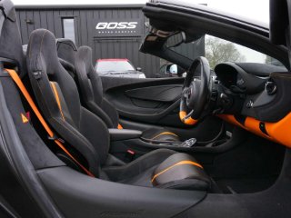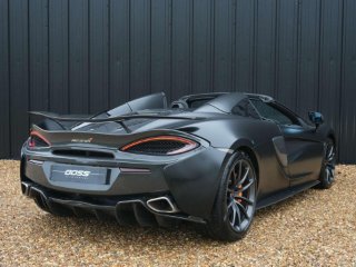 2018 McLaren 570S Spider 29,000 miles – 6 owners – Full service history (5x Mclaren main dealer, 2x specialist) Wrapped in Matt Black (original colour: Metallic Grey) and featuring the Launch Edition interior with Black leather and Alcantara with Orange highlights, this 570S Spider benefits from extensive carbon fibre wrapped exterior enhancements and the desirable interior carbon package. Key details: - 2018 / 18 plate - 29,000 miles - 570S Spider - 3.8-litre twin-turbocharged V8 engine (562 bhp) - 7-speed Seamless Shift Gearbox (SSG) - Rear-wheel drive Specification highlights: - Matt Black exterior wrap (original Metallic Grey underneath) - Launch Edition interior: Black leather & Alcantara with Orange highlights - Extensive carbon fibre exterior wrap, including: Front splitter, Side vents, Side skirts, Engine cover, Rear diffuser) - Carbon fibre rear spoiler - Genuine McLaren interior carbon fibre package (dashboard, tunnel, steering elements) - Front axle lifter system - Navigation system - Reversing camera - Bluetooth phone & media connectivity - Dual-zone climate control - LED headlamps - Power-folding heated door mirrors - McLaren IRIS infotainment - Launch control - Sport and Track drive modes - Dihedral doors - 19"/20" lightweight alloy wheels History & ownership: - 6 owners - Full service history Disclaimer: Whilst every effort has been taken to ensure accuracy of all our vehicles information, some inaccuracies may occur. It is important that you do not rely on this information but check with Boss motor company limited about any items which may affect your decision to buy this vehicle. Fuel consumption and power usage figures are for guidance only. Factors such as driving style, weather, loading, traffic conditions, all affect the rate at which fuel or power is consumed. It is likely that some journeys will result in greater fuel consumption for the same distance than other journeys. You would be wise to ensure the power range remains above 20% at all times. -