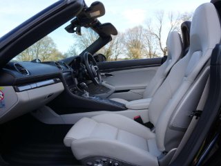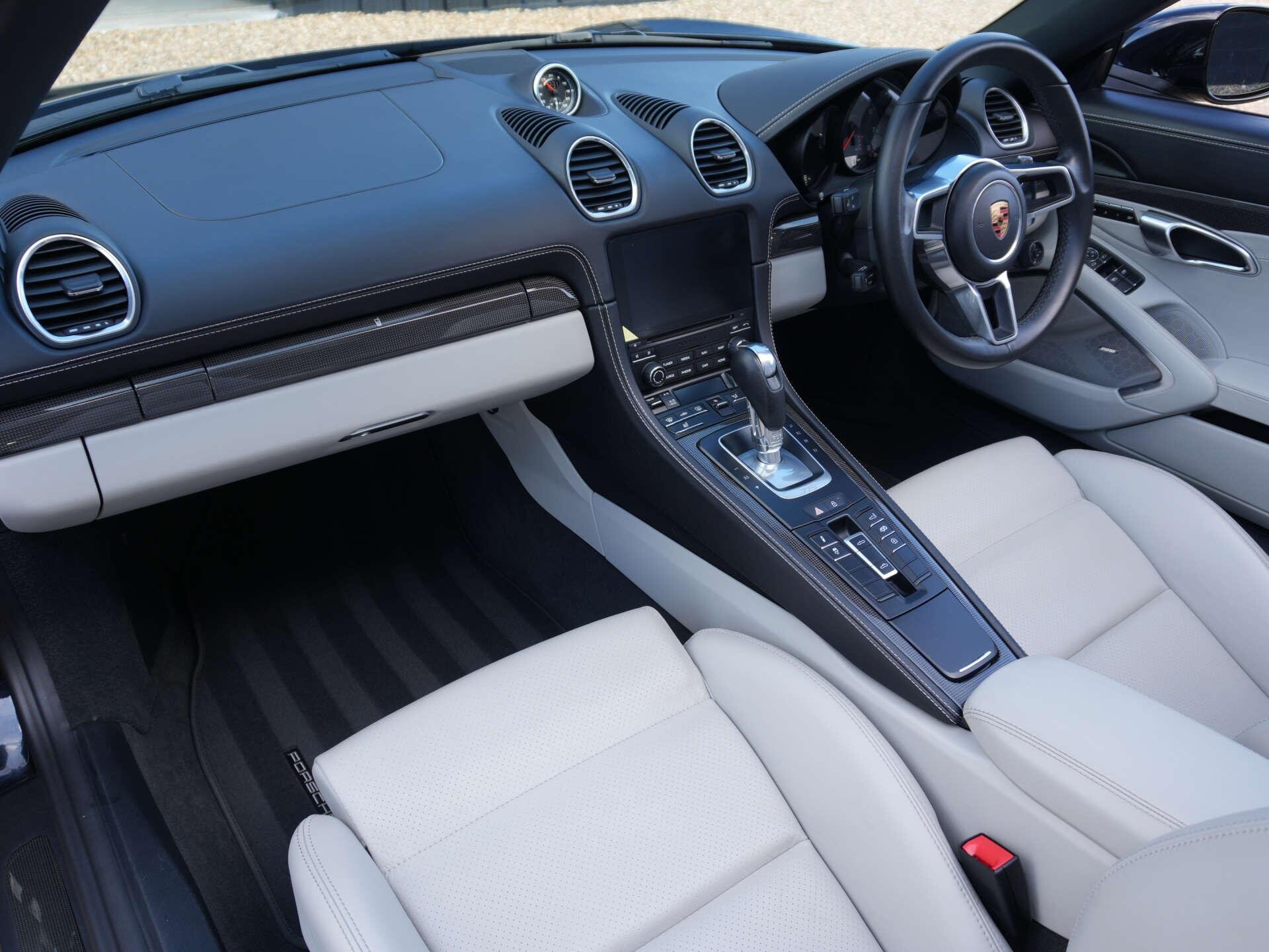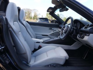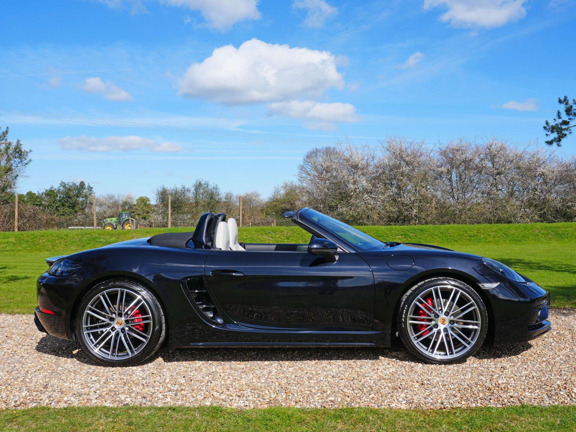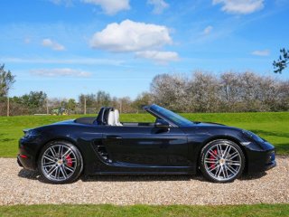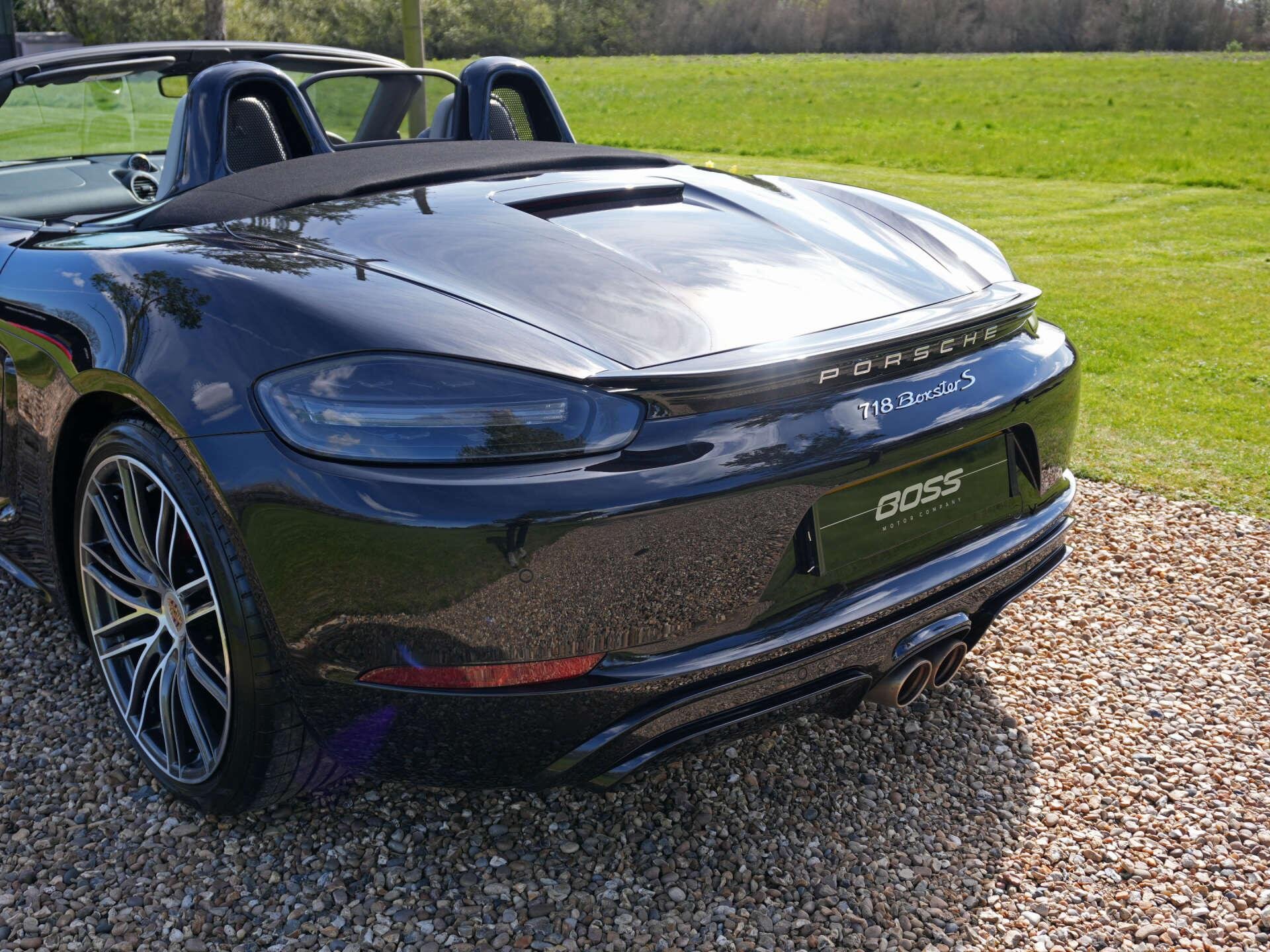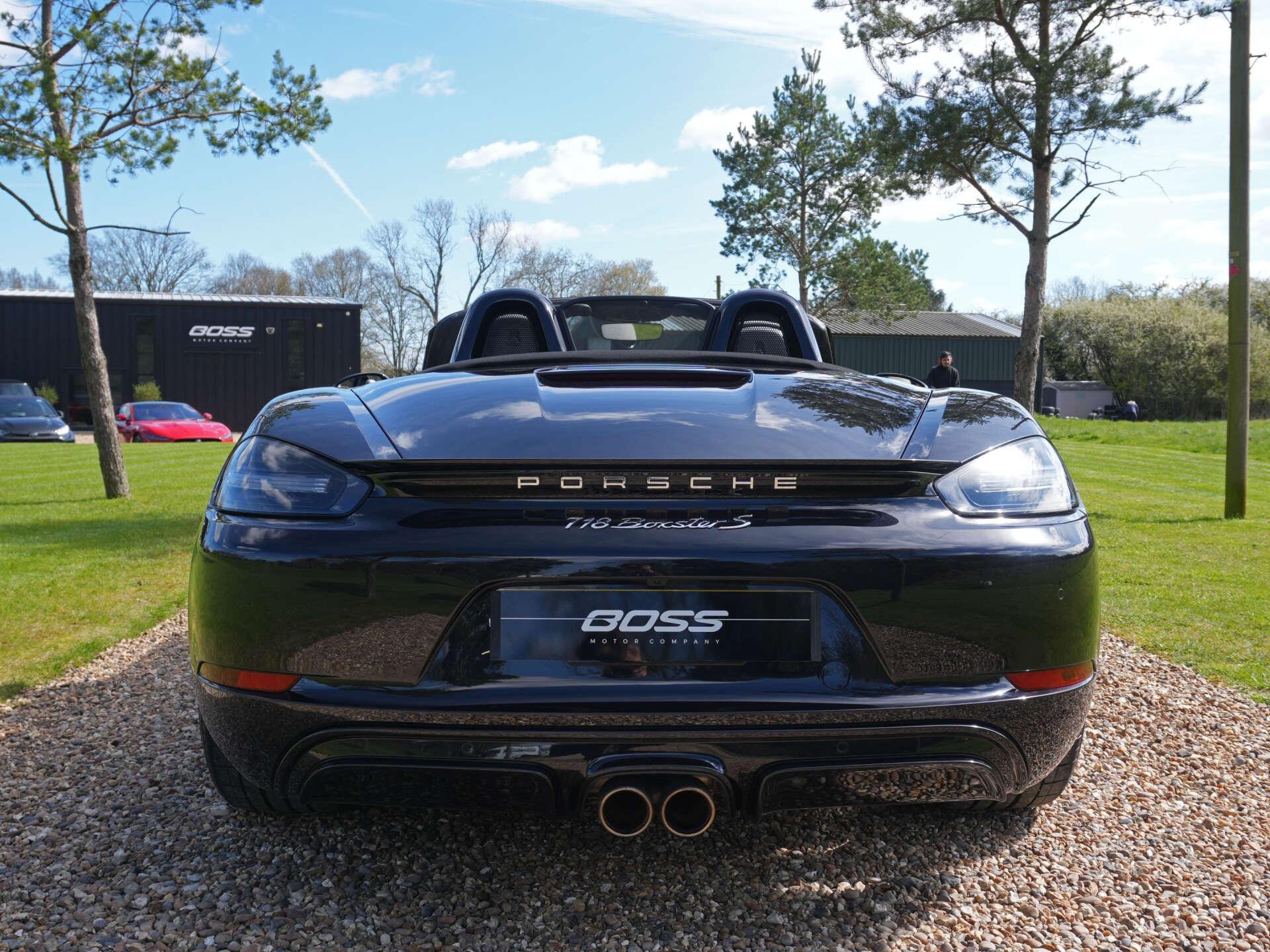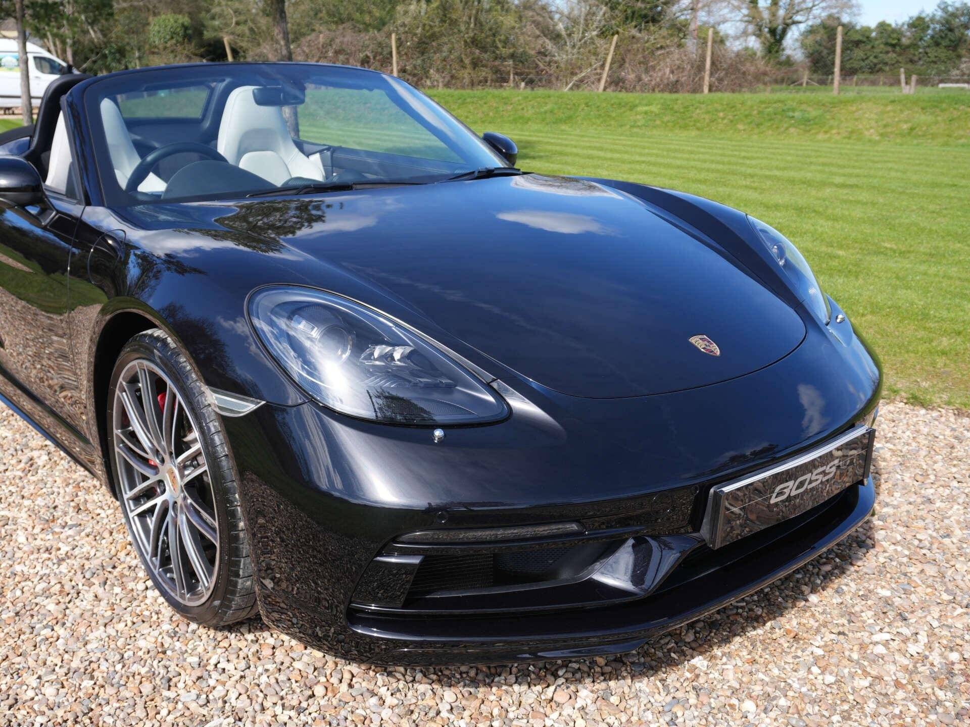 2019 (69) Porsche 718 Boxster S 15,000 miles – 2 owners from new – Full Porsche main dealer service history – Porsche warranty until November 2026 Finished in Jet Black Metallic with Black and Crayon two-tone interior, this low-mileage Boxster S is a highly specified example featuring a wide range of factory options and extended interior detailing. Key details: - 2019 / 69 plate - 15,000 miles - 718 Boxster S - 2.5-litre turbocharged flat-four petrol engine (350 PS) - 7-speed PDK automatic transmission - Rear-wheel drive Specification highlights: - Jet Black Metallic exterior - Black and Crayon two-tone leather interior - Carbon interior package (with leather interior) - Porsche crest embossed in headrests - Crayon seat belts - Illuminated carbon door sill guards - Roll-over bars painted in exterior colour - Rear side air intake grilles painted - Tinted tail lights - SportDesign package - Porsche Sports exhaust system - PASM (Porsche Active Suspension Management) - Sport Chrono Package including mode switch - Adaptive Sports Seats Plus (18-way electric) with memory - Heated front seats - Electric steering column adjustment - Power Steering Plus - BOSE Surround Sound System - Apple CarPlay connectivity - ParkAssist front and rear including reversing camera - Cruise control - Electric folding exterior mirrors - Bi-Xenon headlights in Black including PDLS (Porsche Dynamic Light System) - Two-zone climate control - Light Design Package - 64-litre fuel tank - 20" 911 Turbo alloy wheels - Full colour Porsche crest centre caps History & ownership: - 2 owners from new - Full Porsche main dealer service history - Porsche warranty valid until November 2026 Disclaimer: Whilst every effort has been taken to ensure accuracy of all our vehicles information, some inaccuracies may occur. It is important that you do not rely on this information but check with Boss motor company limited about any items which may affect your decision to buy this vehicle. Fuel consumption and power usage figures are for guidance only. Factors such as driving style, weather, loading, traffic conditions, all affect the rate at which fuel or power is consumed. It is likely that some journeys will result in greater fuel consumption for the same distance than other journeys. You would be wise to ensure the power range remains above 20% at all times. -
