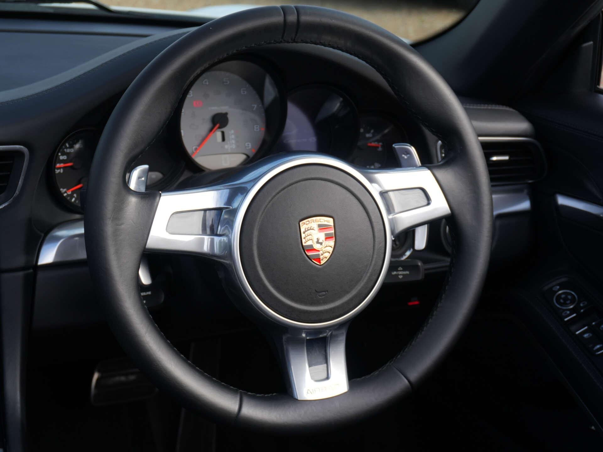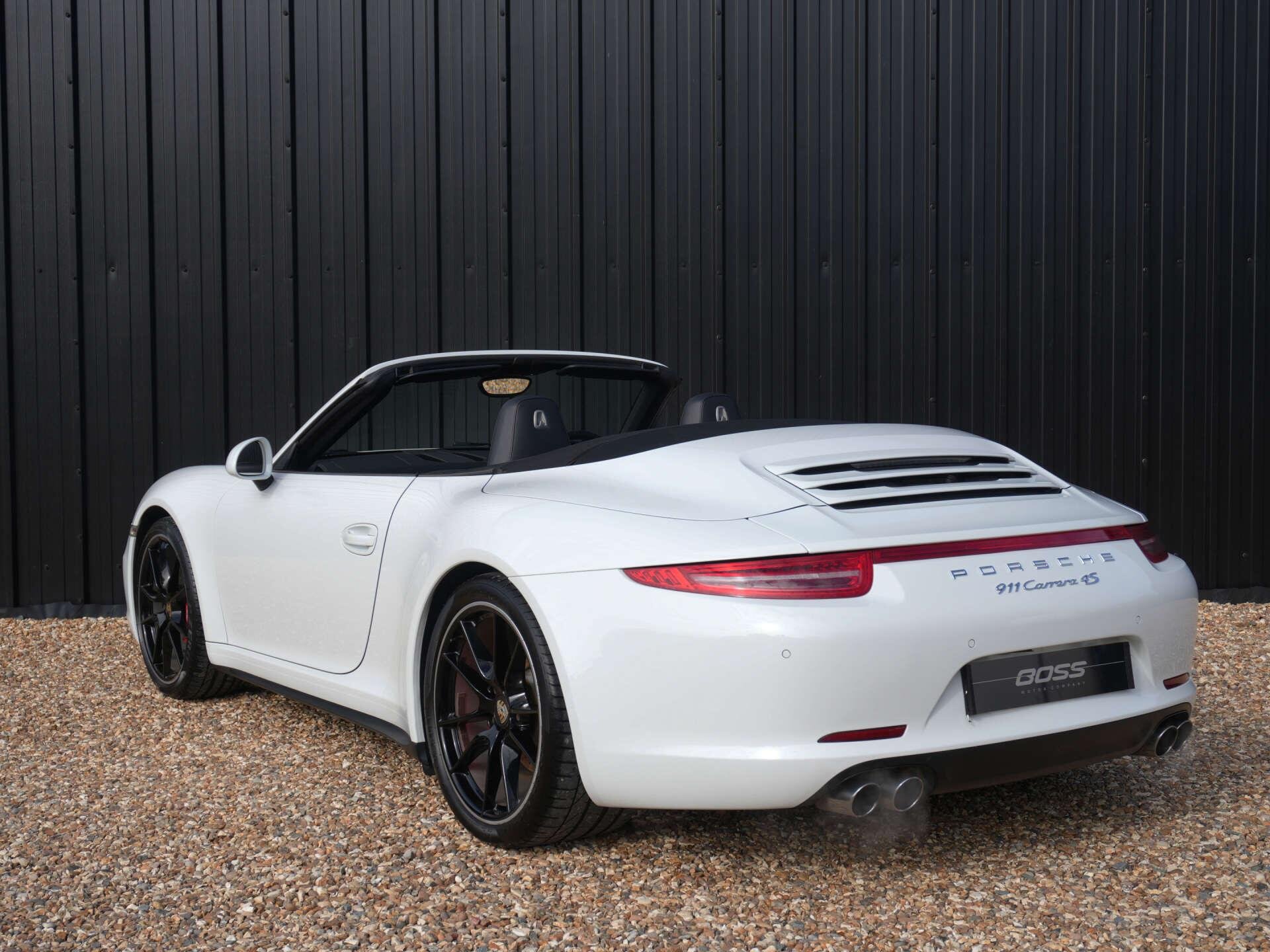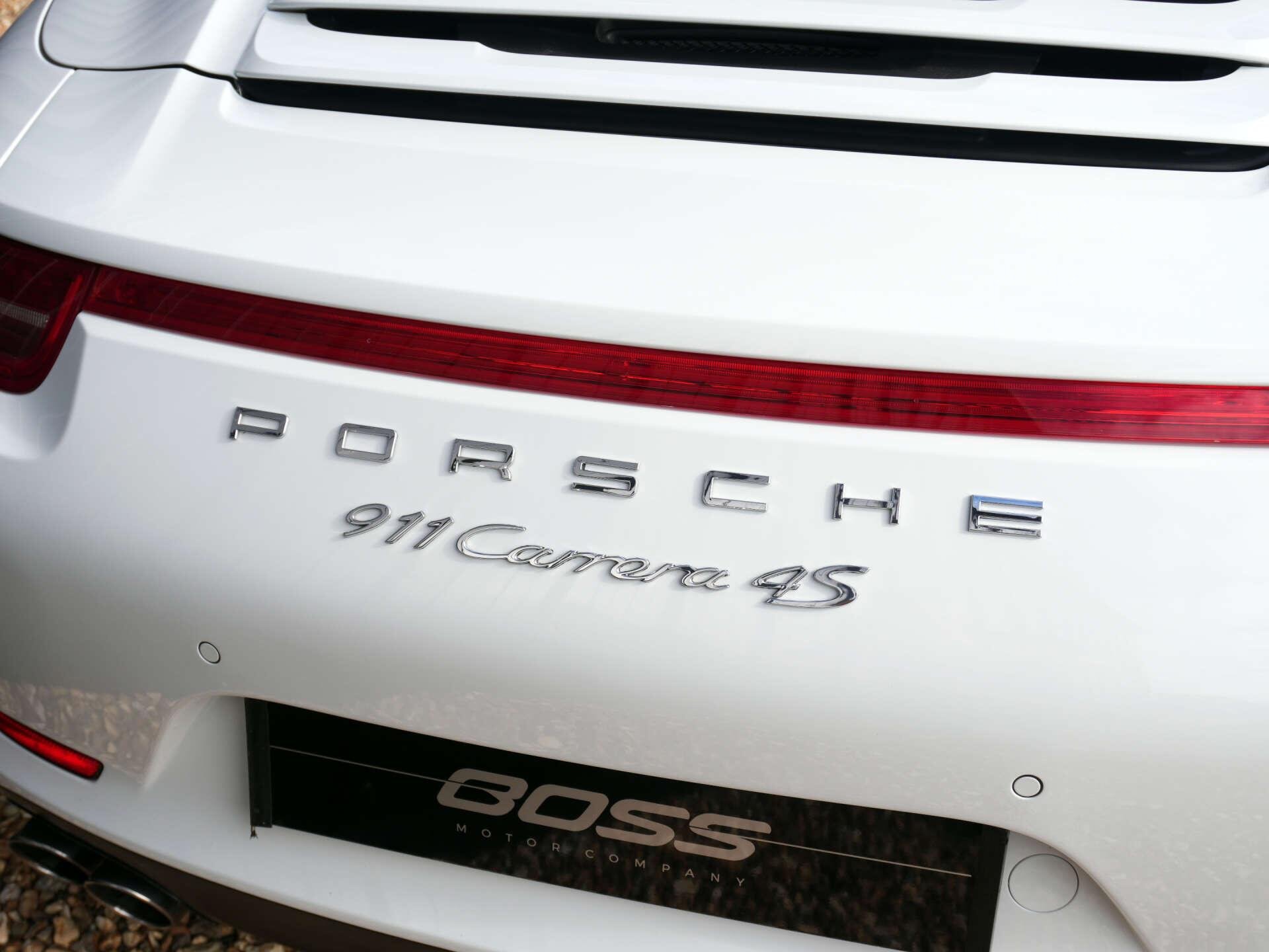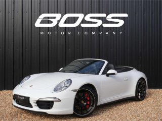 2013 (63) Porsche 911 Carrera 4S Convertible (991) 54,000 miles – Full service history Finished in Pure White with a Black leather interior, this Carrera 4S Convertible is a well-maintained example with a strong specification. Key details: - 2013 / 63 plate - 54,000 miles - Carrera 4S Convertible (991) - 3.8-litre flat-six petrol engine - 7-speed PDK transmission - All-wheel drive Specification highlights: - Pure White exterior - Black leather interior - BOSE surround sound system - Porsche Sports exhaust system - Partially electric 4-way sports seats - Heated front seats - Sports steering wheel with PDK paddles - Front and rear parking sensors - Bi-Xenon headlights - Power-folding exterior mirrors - Electric wind deflector - 20" Carrera S alloy wheels History & ownership: - Full service history (combination of Porsche main dealer and Porsche specialist) - Recent major service including spark plugs, brake fluid, auxiliry belt, etc Disclaimer: Whilst every effort has been taken to ensure accuracy of all our vehicles information, some inaccuracies may occur. It is important that you do not rely on this information but check with Boss motor company limited about any items which may affect your decision to buy this vehicle. Fuel consumption and power usage figures are for guidance only. Factors such as driving style, weather, loading, traffic conditions, all affect the rate at which fuel or power is consumed. It is likely that some journeys will result in greater fuel consumption for the same distance than other journeys. You would be wise to ensure the power range remains above 20% at all times. -
