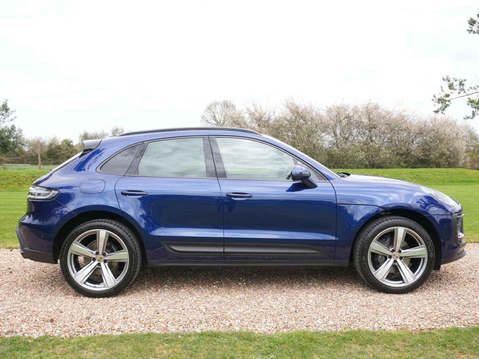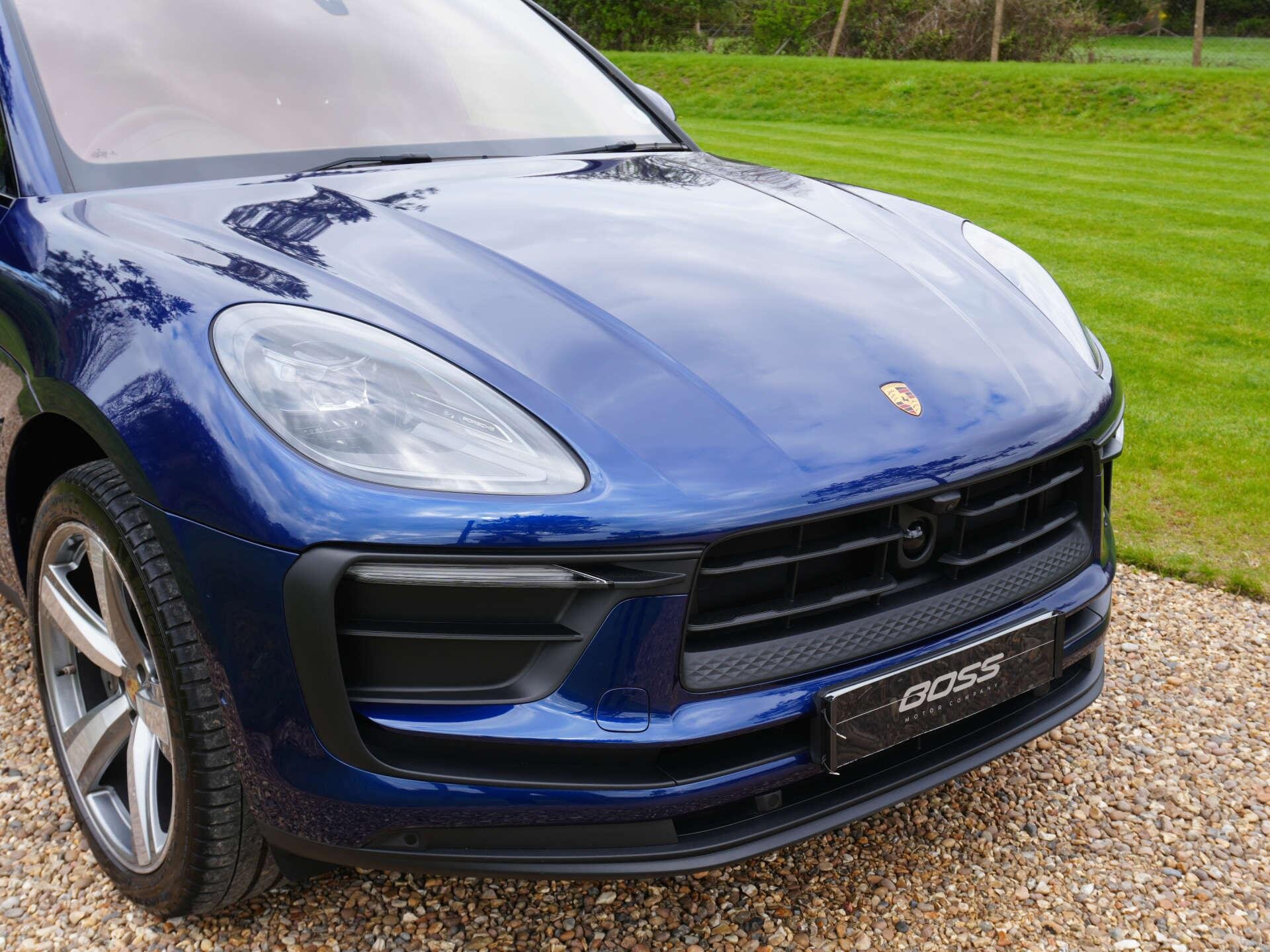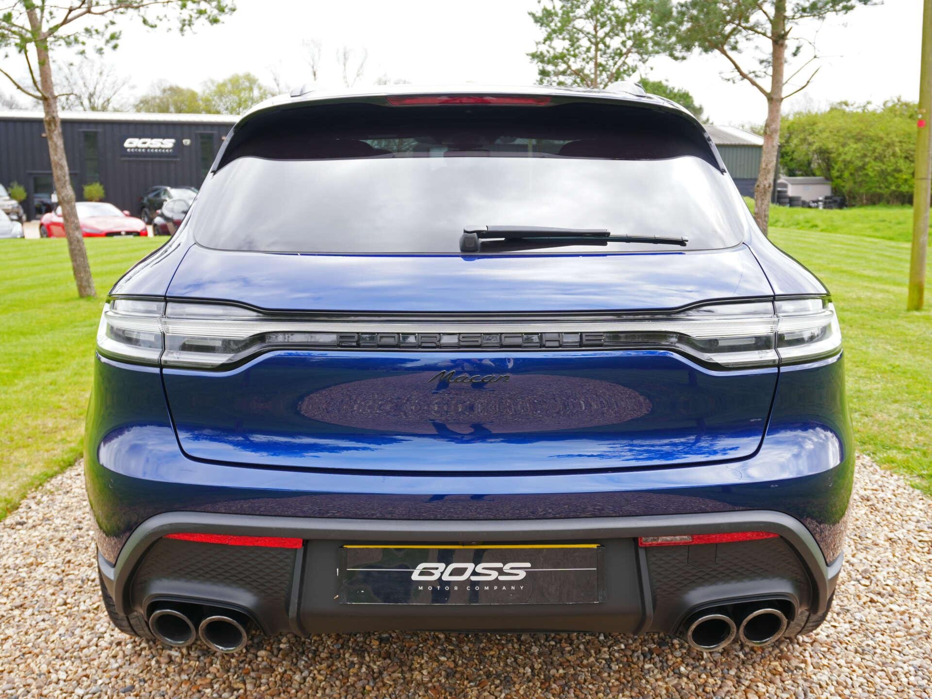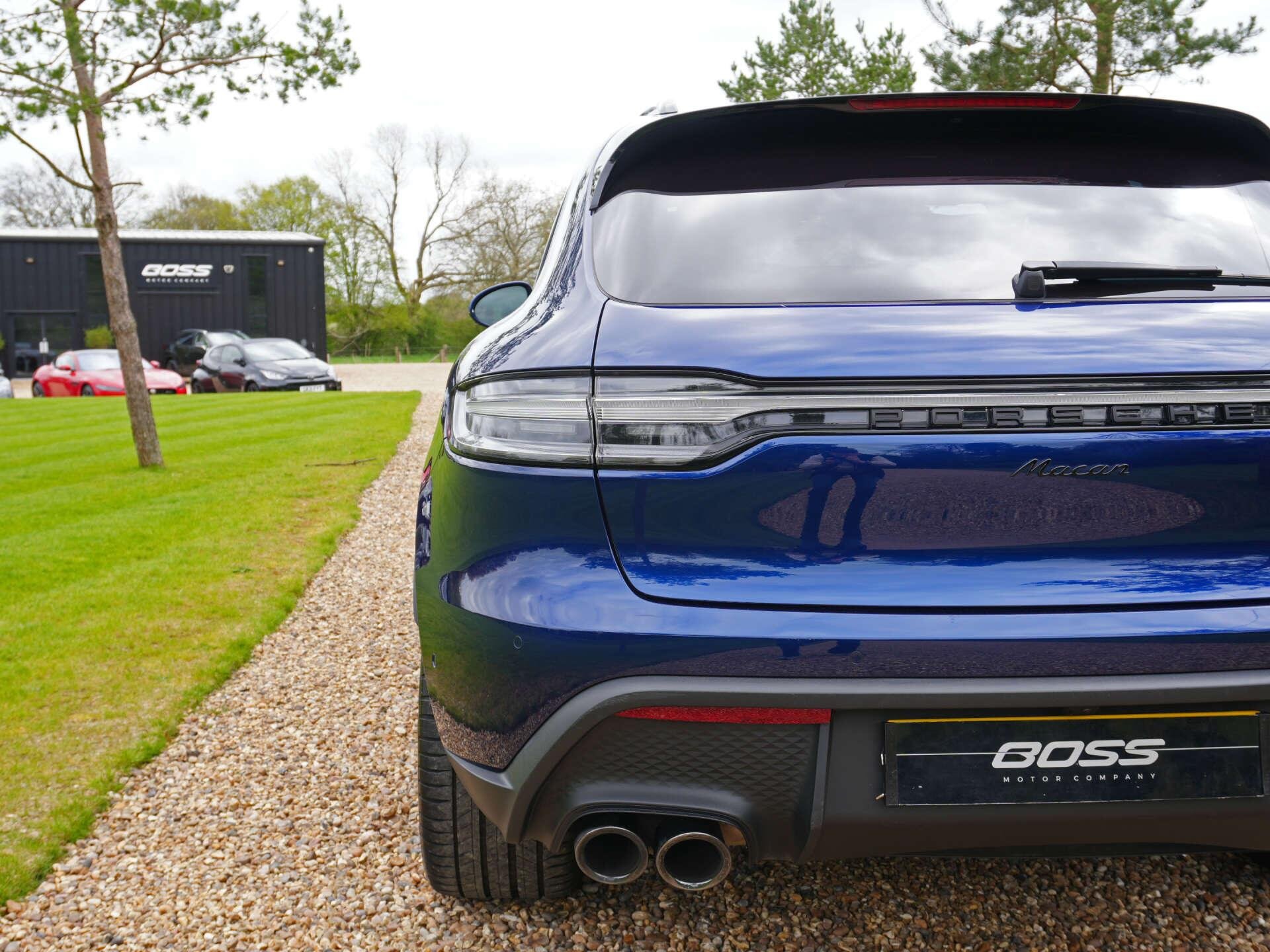 2022 (72) Porsche Macan 10,300 miles – 2 owners from new – Full service history Finished in Gentian Blue Metallic with Black leather interior featuring Blue contrast stitching, this low-mileage Macan is a well-specified example with a strong combination of styling, comfort and driver-focused options. Key details: - 2022 / 72 plate - 10,300 miles - Macan - 2.0-litre turbocharged petrol engine (265 PS) - 7-speed PDK automatic transmission - All-wheel drive Specification highlights: - Gentian Blue Metallic exterior - Black leather interior with Blue contrast stitching - Extended leather interior - Porsche crest embossed in headrests - Blue seat belts - Opening glass panoramic roof - 21" alloy wheels - Gloss Black roof rails - Gloss Black window surrounds - SportDesign door mirrors - Painted lower mirror trims - Privacy glass - Surround View camera system - ParkAssist front and rear - Adaptive cruise control - Sport Chrono Package Plus - Heated multifunction steering wheel - 18-way Adaptive Sports seats with memory settings - Power-folding exterior mirrors - Sports tailpipes in Black - Apple CarPlay connectivity History & ownership: - 2 owners from new - Full service history Disclaimer: Whilst every effort has been taken to ensure accuracy of all our vehicles information, some inaccuracies may occur. It is important that you do not rely on this information but check with Boss motor company limited about any items which may affect your decision to buy this vehicle. Fuel consumption and power usage figures are for guidance only. Factors such as driving style, weather, loading, traffic conditions, all affect the rate at which fuel or power is consumed. It is likely that some journeys will result in greater fuel consumption for the same distance than other journeys. You would be wise to ensure the power range remains above 20% at all times. -