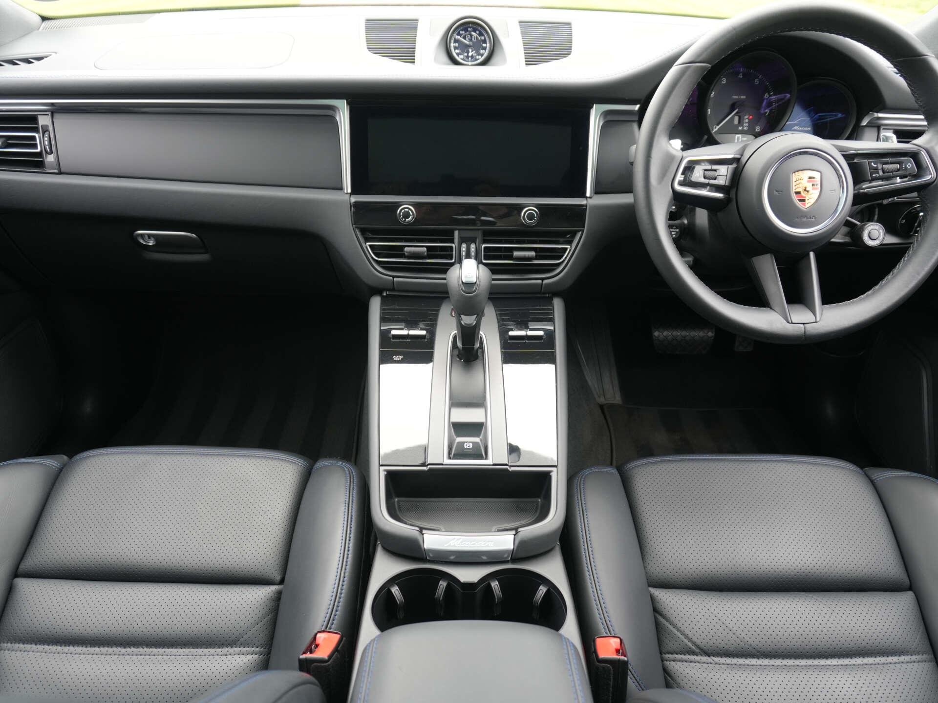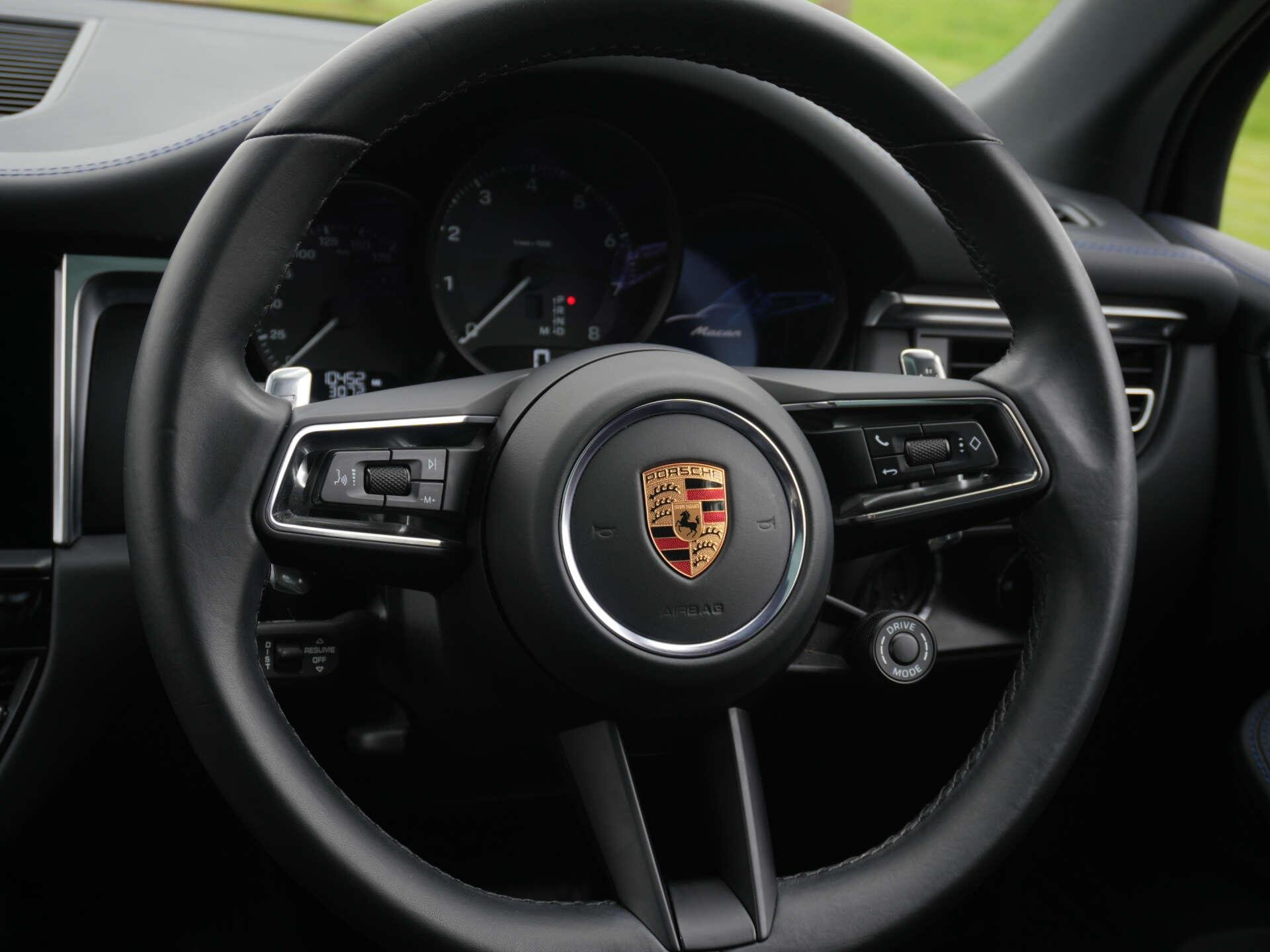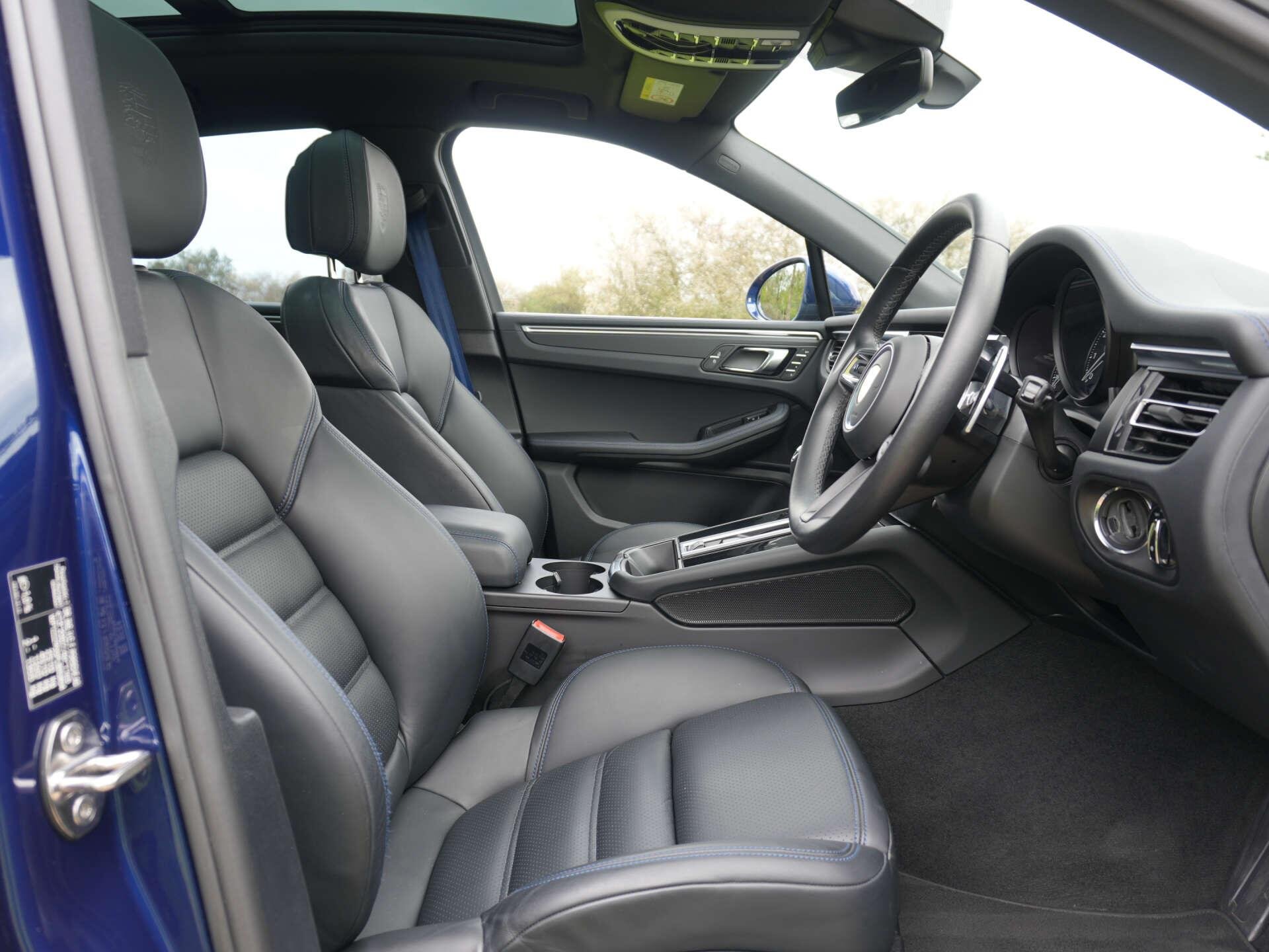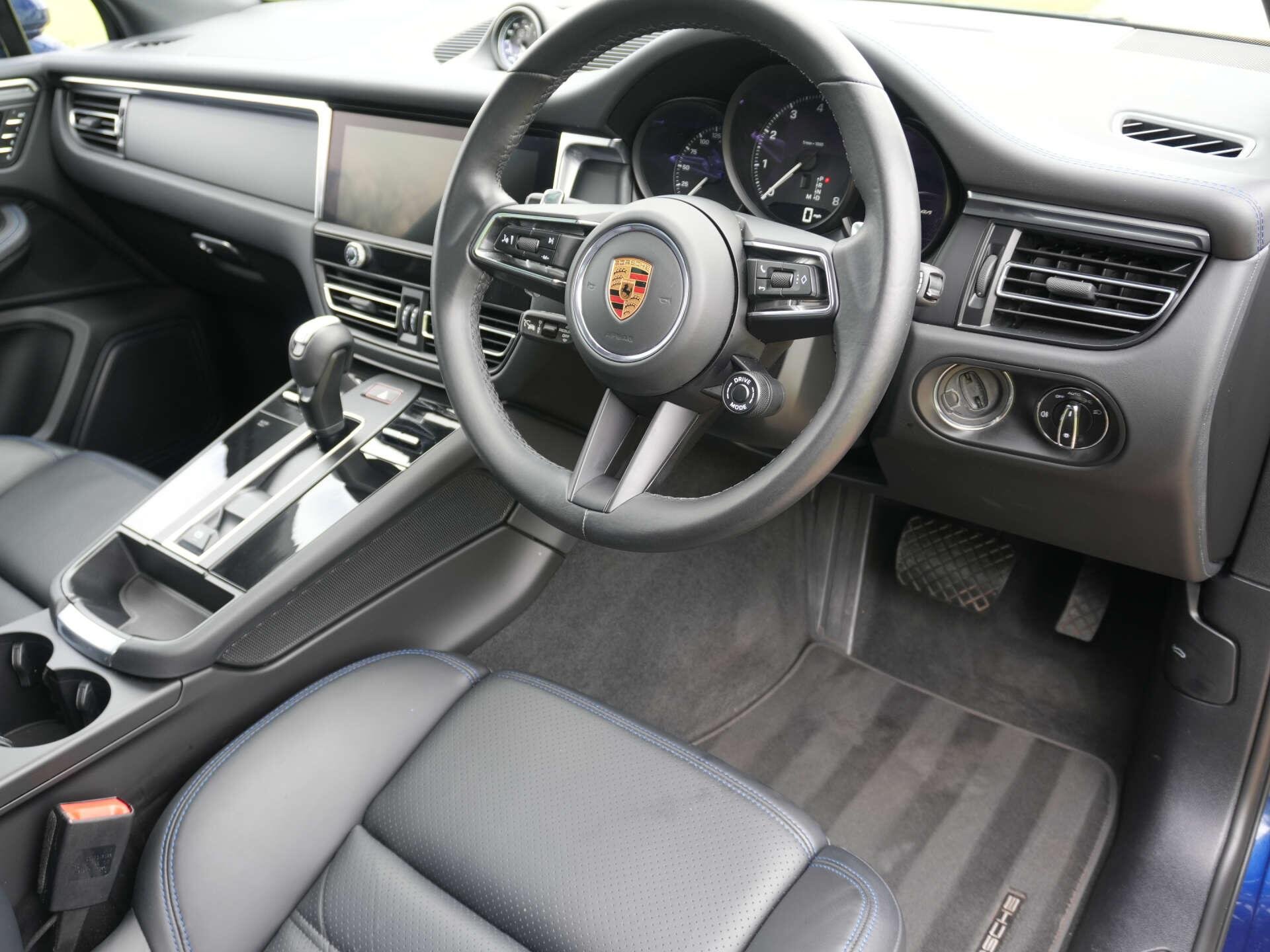 2022 (72) Porsche Macan 10,300 miles – 2 owners from new – Full service history Finished in Gentian Blue Metallic with Black leather interior featuring Blue contrast stitching, this low-mileage Macan is a well-specified example with a strong combination of styling, comfort and driver-focused options. Key details: - 2022 / 72 plate - 10,300 miles - Macan - 2.0-litre turbocharged petrol engine (265 PS) - 7-speed PDK automatic transmission - All-wheel drive Specification highlights: - Gentian Blue Metallic exterior - Black leather interior with Blue contrast stitching - Extended leather interior - Porsche crest embossed in headrests - Blue seat belts - Opening glass panoramic roof - 21" alloy wheels - Gloss Black roof rails - Gloss Black window surrounds - SportDesign door mirrors - Painted lower mirror trims - Privacy glass - Surround View camera system - ParkAssist front and rear - Adaptive cruise control - Sport Chrono Package Plus - Heated multifunction steering wheel - 18-way Adaptive Sports seats with memory settings - Power-folding exterior mirrors - Sports tailpipes in Black - Apple CarPlay connectivity History & ownership: - 2 owners from new - Full service history Disclaimer: Whilst every effort has been taken to ensure accuracy of all our vehicles information, some inaccuracies may occur. It is important that you do not rely on this information but check with Boss motor company limited about any items which may affect your decision to buy this vehicle. Fuel consumption and power usage figures are for guidance only. Factors such as driving style, weather, loading, traffic conditions, all affect the rate at which fuel or power is consumed. It is likely that some journeys will result in greater fuel consumption for the same distance than other journeys. You would be wise to ensure the power range remains above 20% at all times. -