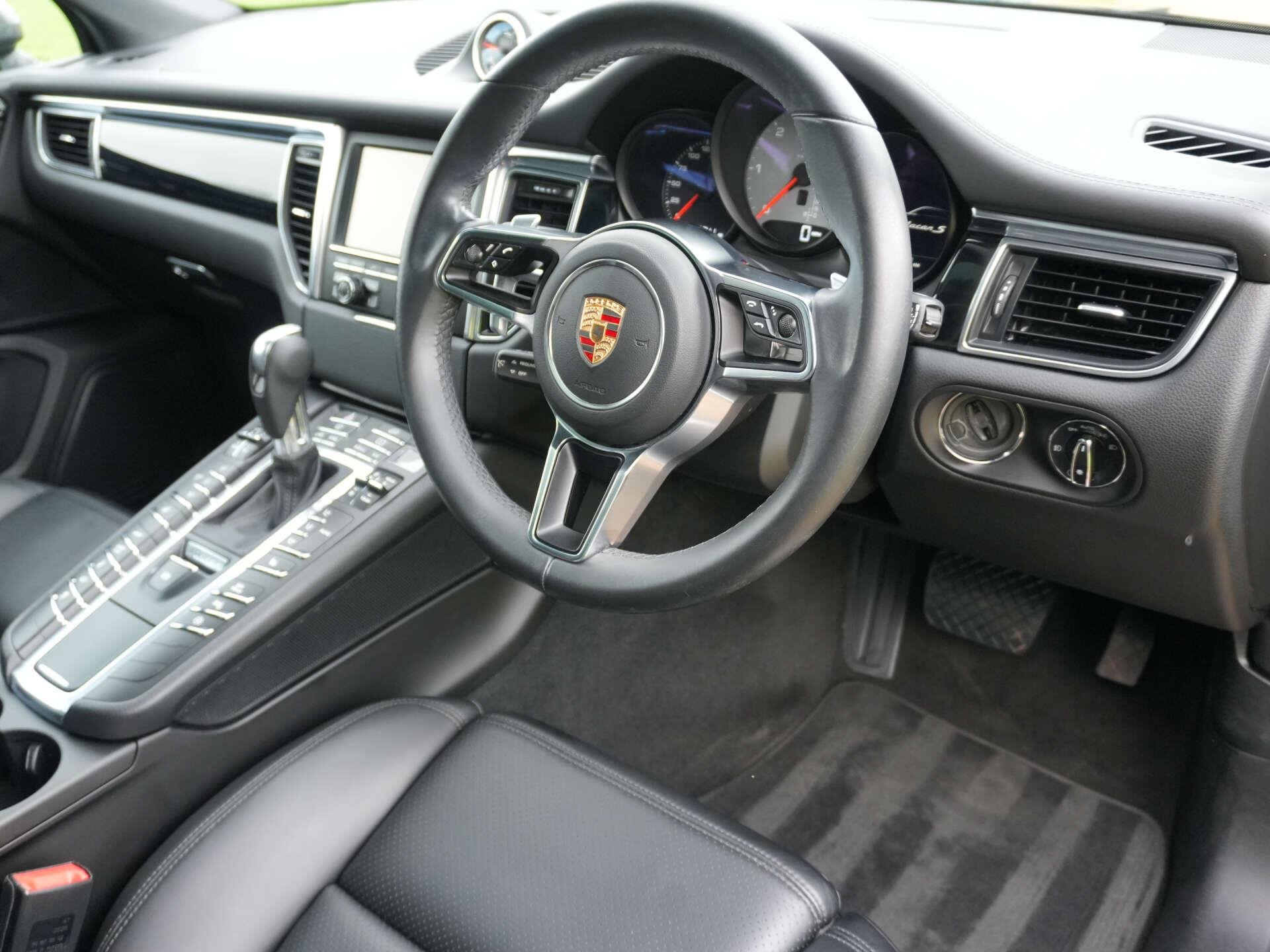 2015 Porsche Macan S Diesel 56,900 miles – 2 owners from new – Full Porsche main dealer service history Finished in Agate Grey Metallic with Black full leather interior, this Macan S Diesel is a well-maintained example with a desirable factory specification and full Porsche main dealer history. Key details: - 2015 / 15 plate - 56,900 miles - Macan S Diesel - 3.0-litre V6 turbo diesel engine (258 PS) - 7-speed PDK automatic transmission - All-wheel drive Specification highlights: - Agate Grey Metallic exterior - Black full leather interior - Opening glass panoramic sunroof - Air suspension - Sports chrono package - Bi-Xenon headlights with automatic high beam assist - 14-way electrically adjustable front seats with memory settings - Heated front seats - Electric steering column adjustment - Multifunction steering wheel - Reversing camera - Power tailgate - RS Spyder Design alloy wheels in Black - Black roof rails - Black window surrounds - Cruise control - Dual-zone climate control - Front & rear parking sensors History & ownership: - 2 owners from new - Full Porsche main dealer service history Disclaimer: Whilst every effort has been taken to ensure accuracy of all our vehicles information, some inaccuracies may occur. It is important that you do not rely on this information but check with Boss motor company limited about any items which may affect your decision to buy this vehicle. Fuel consumption and power usage figures are for guidance only. Factors such as driving style, weather, loading, traffic conditions, all affect the rate at which fuel or power is consumed. It is likely that some journeys will result in greater fuel consumption for the same distance than other journeys. You would be wise to ensure the power range remains above 20% at all times. -