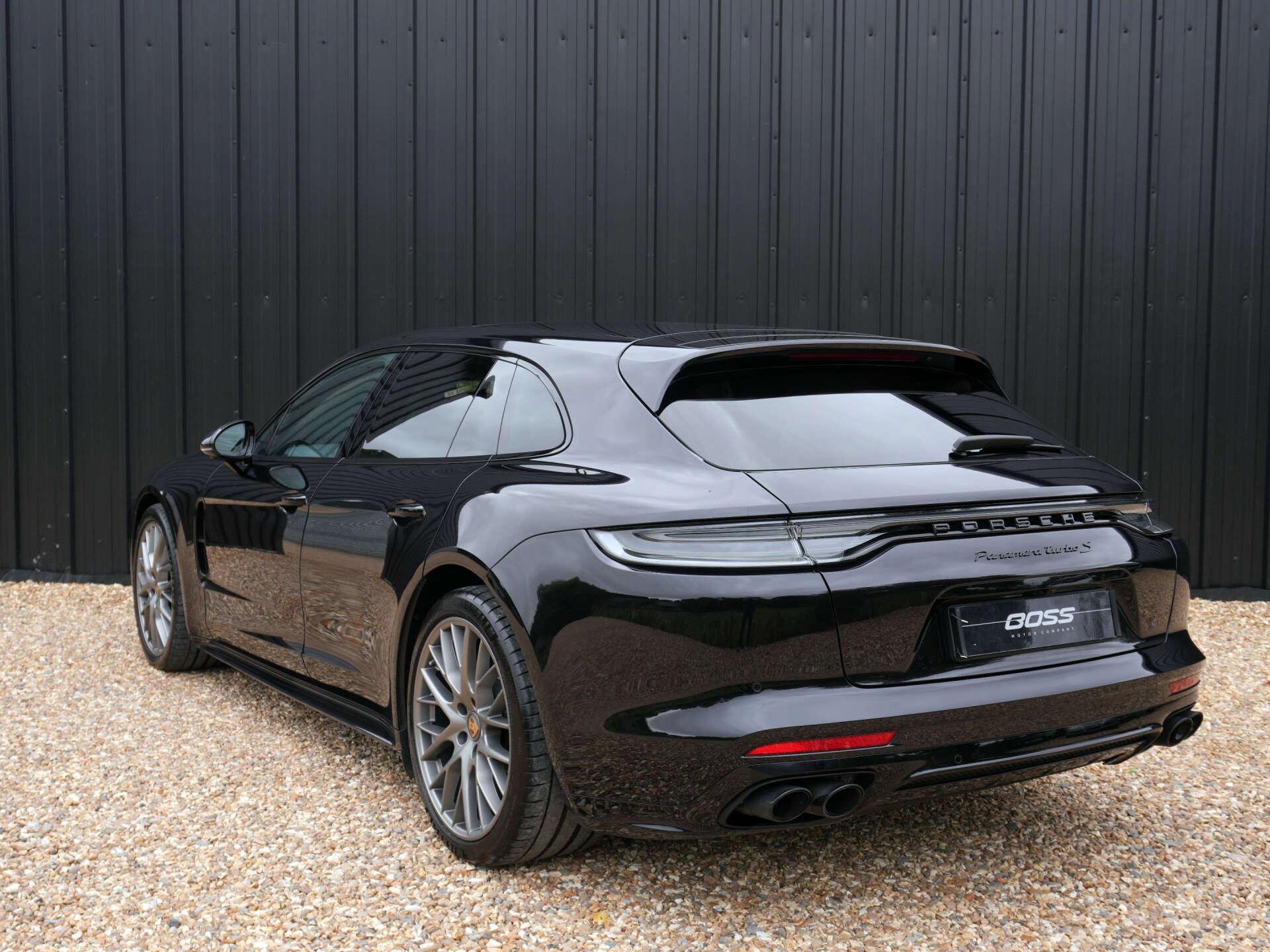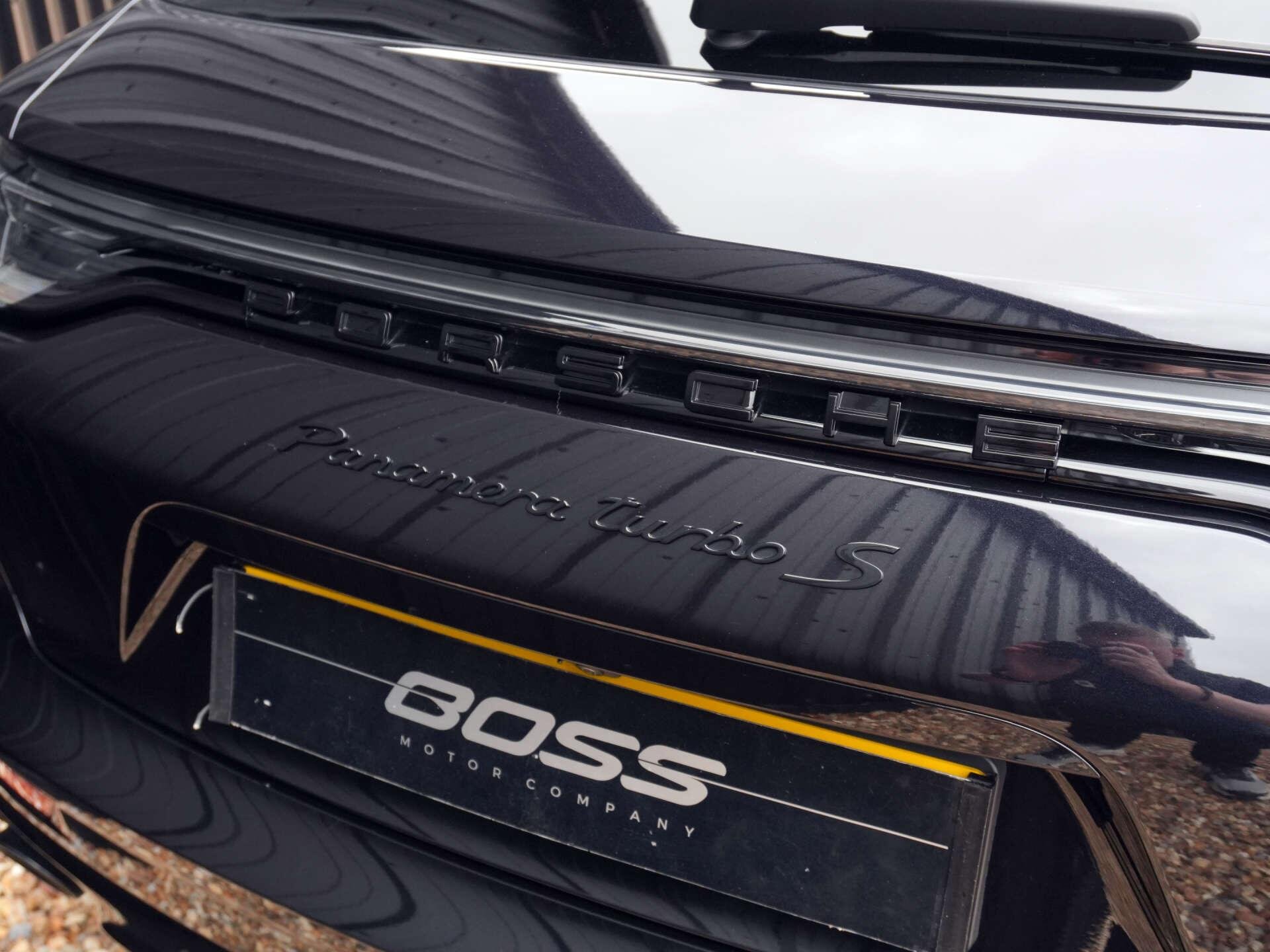 We are delighted to present this stunning 1 owner from new and very rare Porsche Panamera Turbo S Sport Turismo. At the time of advertising, this is the only Sport Turismo Turbo S for sale in the country! Finished in Jet Black Metallic, with two-tone leather interior in Black and Crayon, it is further complimented by a FULL Porsche main dealer service history! Great specification list including: - Jet Black Metallic - 21" Panamera SportDesign wheels painted in Satin Platinum - Adaptive cruise control - Adaptive sports seats in front (18-Way electric) with memory package - Ambient lighting - Carbon interior package - Cupholder covers (front) - Exclusive design tailights - Four-zone automatic climate control - Heated sports steering wheel - Ioniser - Lane change assist - Model designation painted in Black (high-gloss) - Privacy glass - Seat ventilation (front) - Side window trims in Black (high-gloss) - Soft close doors - SportDesign package with SportDesign sideskirts - Sports tailpipes in Black - Storage package - USB-C interface in rear Disclaimer: Whilst every effort has been taken to ensure accuracy of all our vehicles information, some inaccuracies may occur. It is important that you do not rely on this information but check with Boss motor company limited about any items which may affect your decision to buy this vehicle. Fuel consumption and power usage figures are for guidance only. Factors such as driving style, weather, loading, traffic conditions, all affect the rate at which fuel or power is consumed. It is likely that some journeys will result in greater fuel consumption for the same distance than other journeys. You would be wise to ensure the power range remains above 20% at all times. -